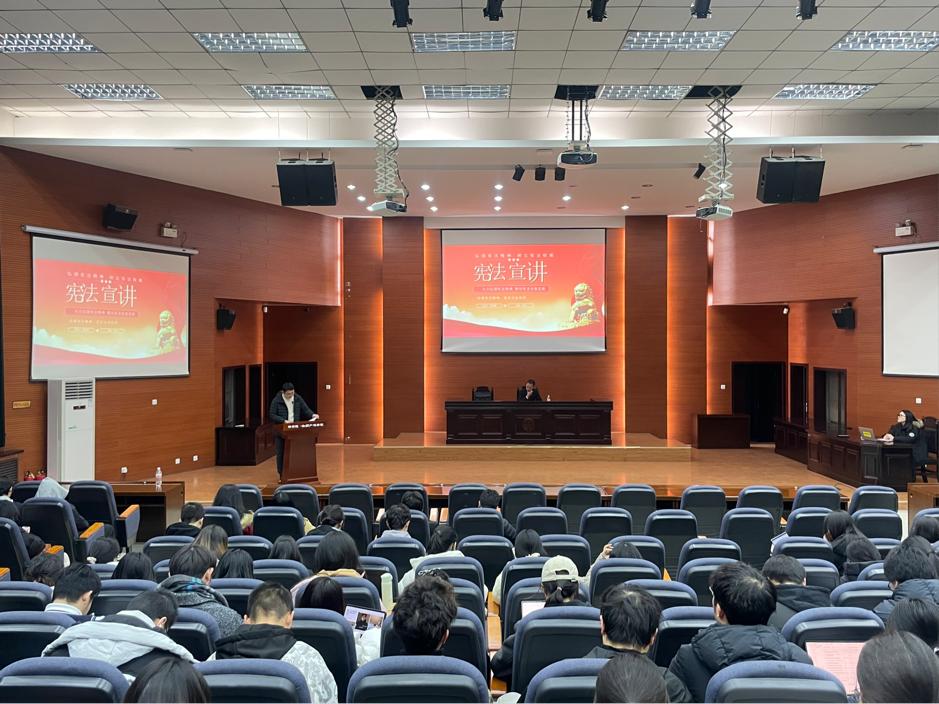宣讲内容由“弘扬宪法精神,坚定法治信仰”的重要性、“尊法、畏法、守法,做法治中国建设优秀人才”两部分组成。何向阳法官从专业角度向学生们阐述了宪法的生命与权威所在,指出宪法是国家的根本大法,是保障公民权利与规范国家权力的基石,与每个人的生活紧密相连。 同时,何向阳法官从自身多年办案经验入手,为同学们分享了涉及大学生危险驾驶、诈骗、强奸、盗窃和帮助信息网络犯罪等典型案件,由这些引人深思且贴近学生生活的真实案例提醒同学们要以案为鉴,立志高远,踏实肯干,努力成长为有法治信仰的人!