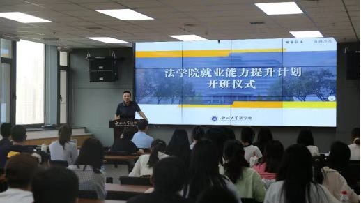 王思锋院长为仪式致辞。他表示,当前社会对高水平法律专业人才的需求依然旺盛,法律专业人才的竞争日趋激烈,面对严峻的就业形势,同学们需要不断提升自身专业能力和综合素质,掌握求职主动权。就业能力提升训练营的开办,对同学们明确求职目标、丰富求职技能、提升综合素质、培养职场思维等具有重要帮助,希望同学们能够从训练营中学有所得,提升个人能力,实现高质量就业。