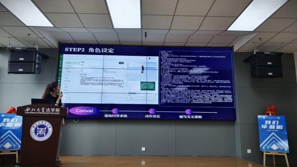 第一小组的“司法AI助理-Fairy1.0”项目依托Agent的工作流+虚拟人交互系统,结合本地法律知识库和多样化插件支持,通过虚拟人和微信机器人的交互形式,为用户带来了一系列智能化的法律服务体验。它的核心功能包括智能AI模拟真人对话、日常知识问答、法律知识库的检索问答及案件基本情况分析。面对评委的技术层面提问,小组成员们详细地回答了关于Metahuman虚拟人制作流程、表情和神态的模拟、大模型的提示词的设计,以及项目运行所需配置要求等问题。