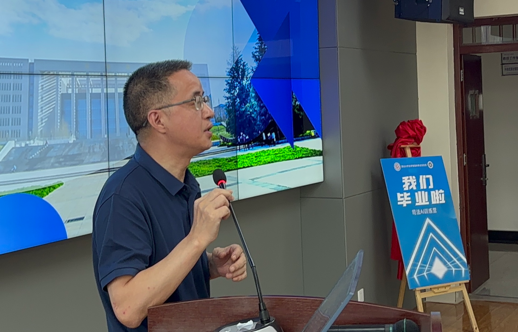 随后,洪新敏主任发表讲话。他表示本次暑期训练营是探索人工智能与法律深度融合的重要一步,共同见证了学员在AI技术与司法实践结合方面的创新思维和卓越能力他提到学员的勤奋致学充分展现了西大校风和精神,积极参与训练营的热情,更是彰显了直面AI挑战、努力提升自我的勇气洪主任指出,希望学员们能够将所学知识应用于法学学习和研究及法律实践,为推动法治社会的数字化转型贡献力量期待实验室在未来能够培养出更多具备数字素养的法学人才,从而为跨学科人才培养和国家法治建设社会做出更大的贡献