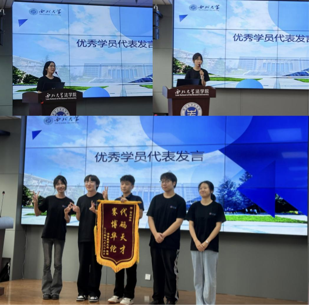 训练营学员代表张吴轩和尤彤宇分享了司法AI学习经历和感受,以及在训练营中的收获和成长,均表达了对学校、学院和实验室各位老师的感谢