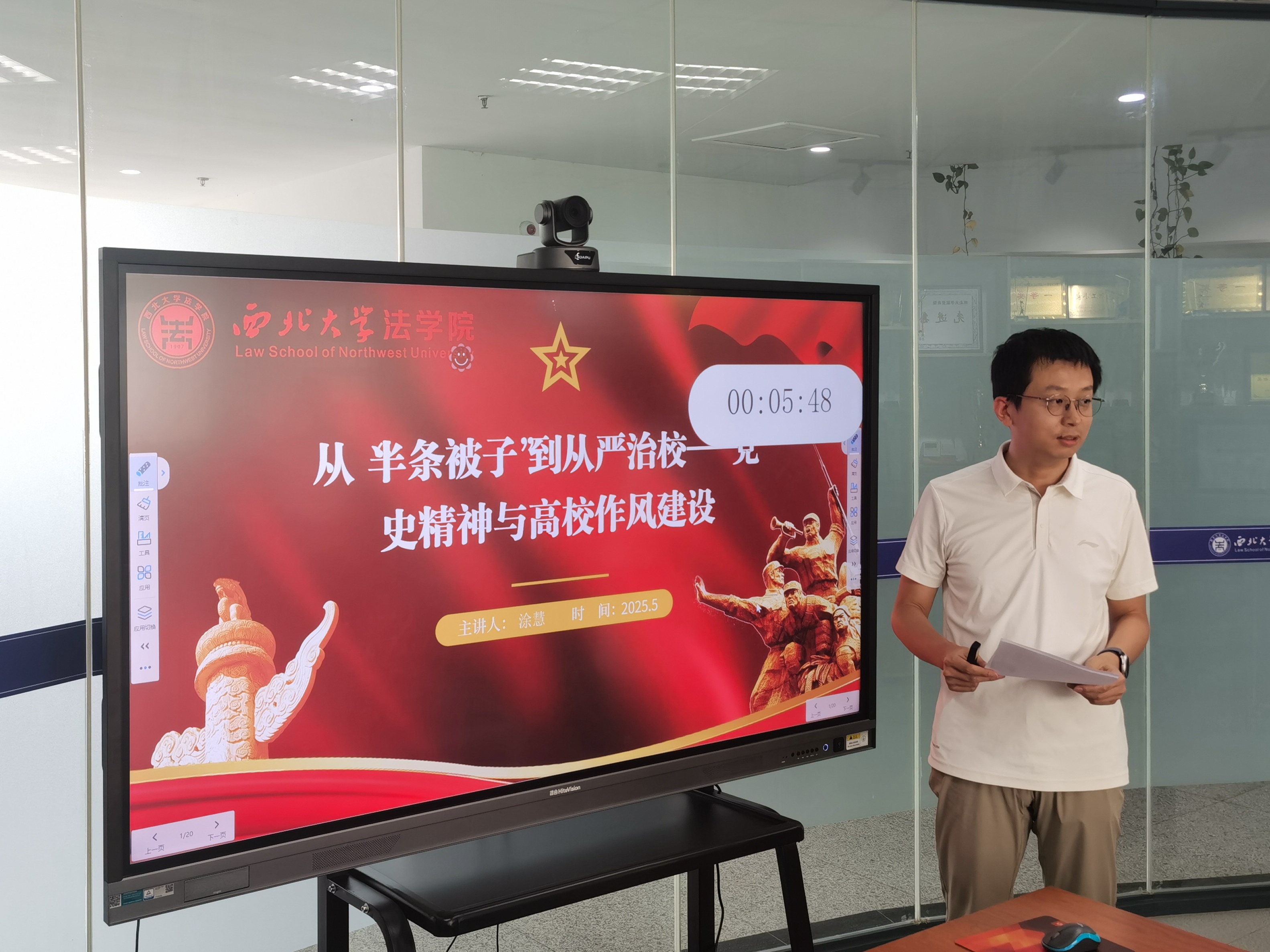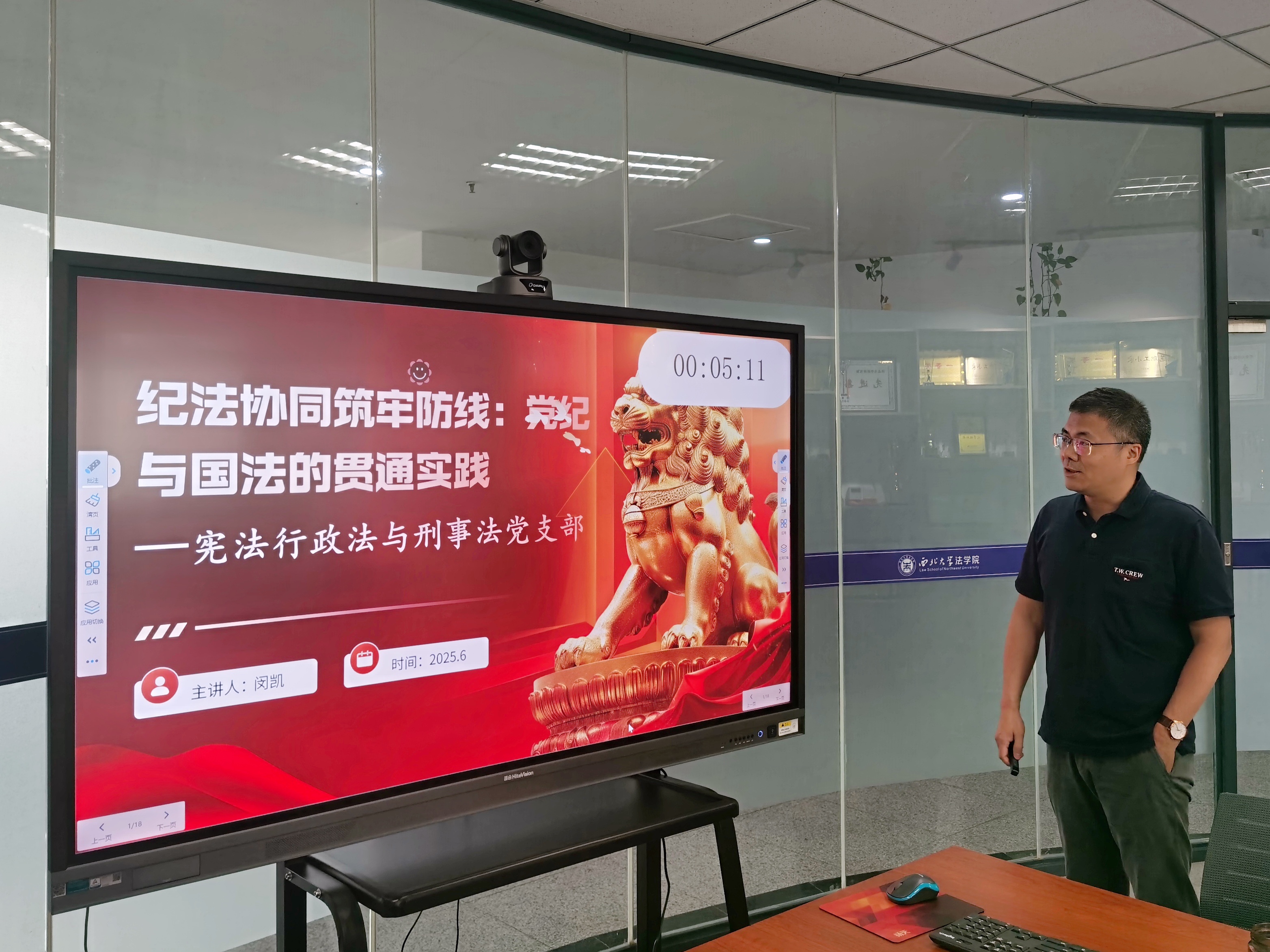 比赛结束后,潘怀平教授对各位参赛选手的表现进行点评。他表扬了各位选手的精彩的表现,认为从不同题材的微党课里,既能感受到学院党员日常学习的扎实深入,也能感受到大家对于比赛的热情和认真投入的态度,鼓励师生们紧扣法学学科特色,进一步丰富微党课内容。