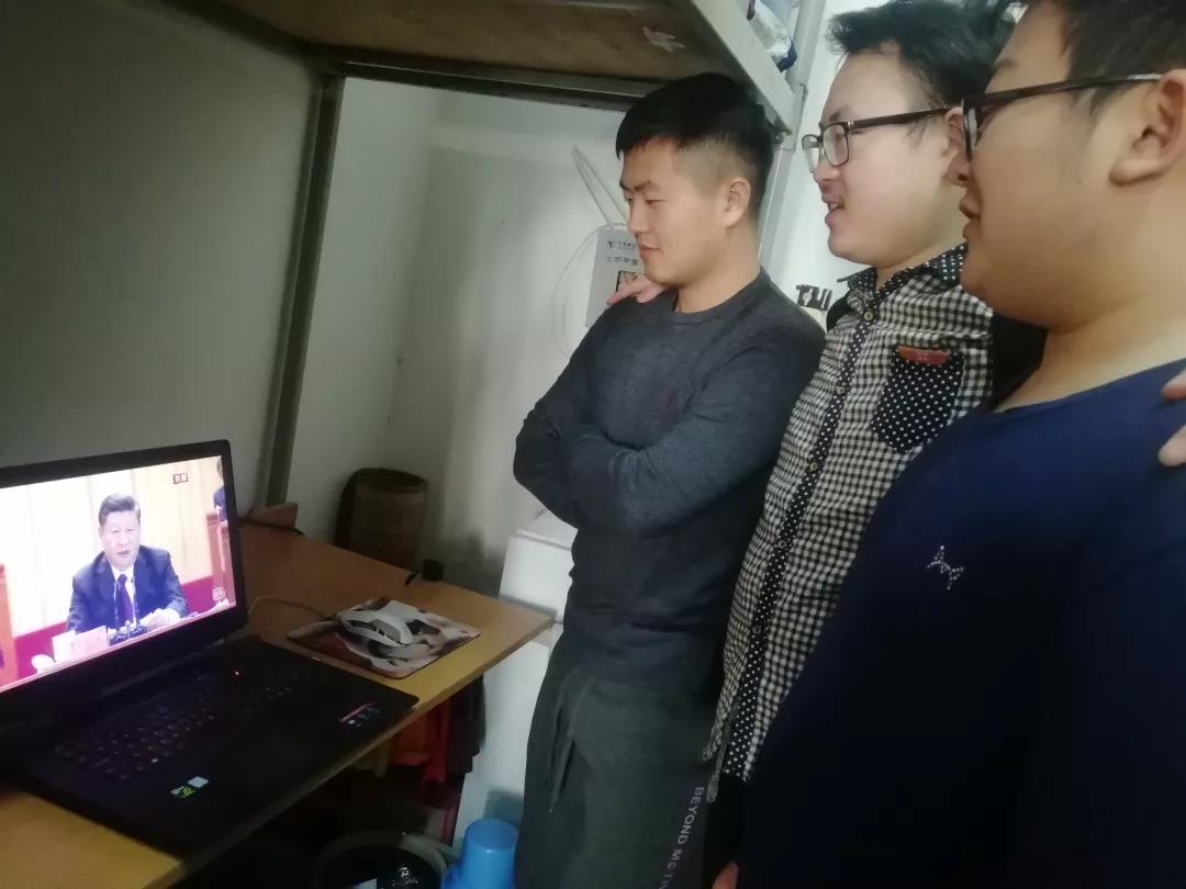 部分学生在宿舍观看庆祝改革开放40周年大会直播