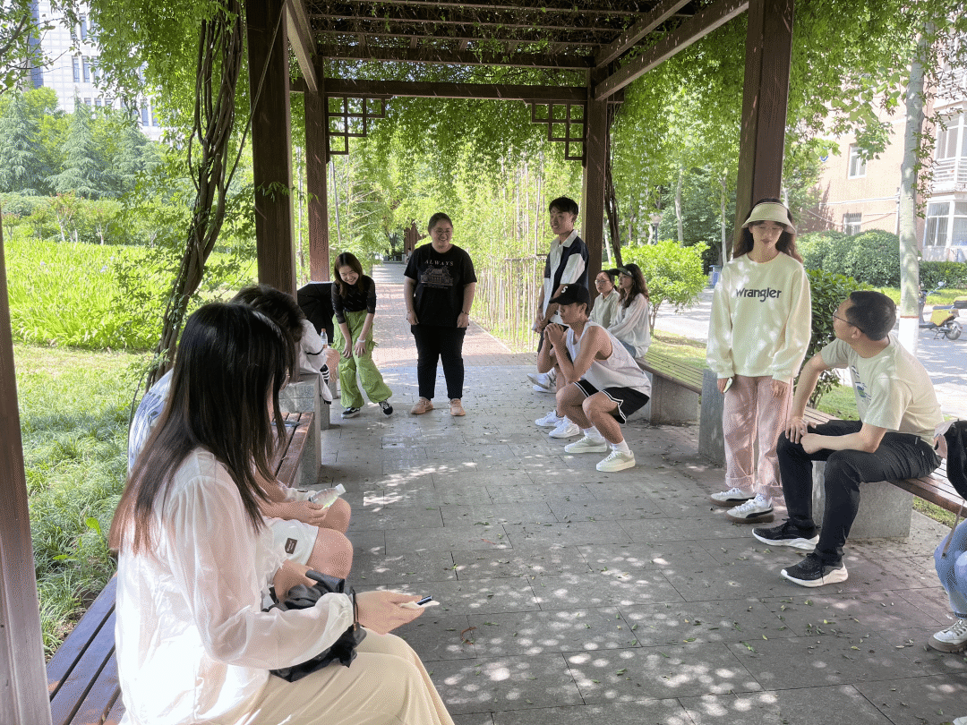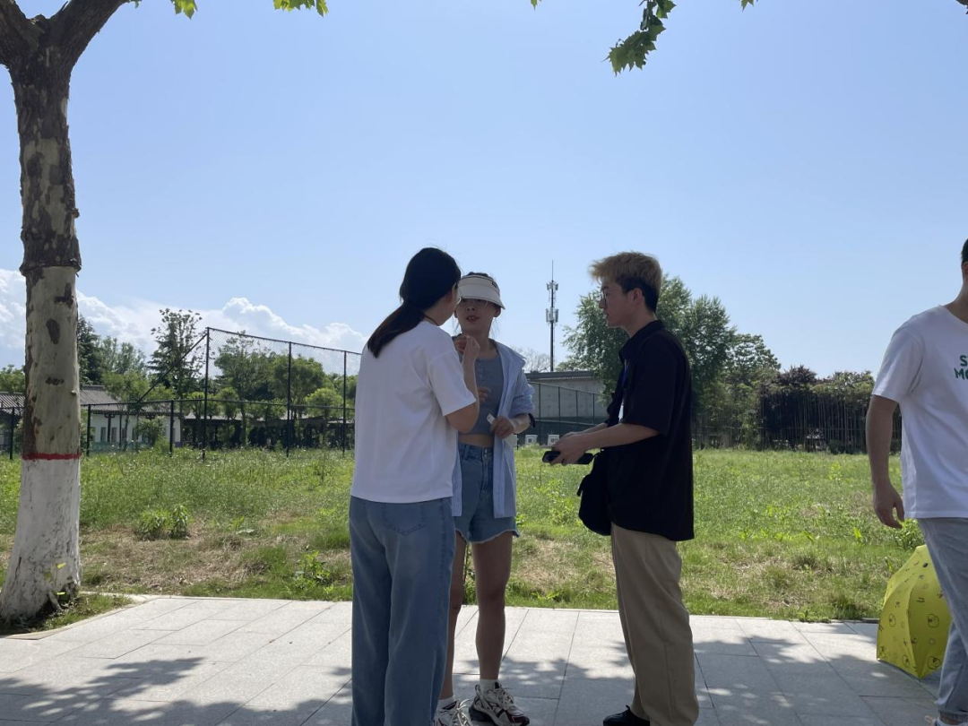 参赛同学在A点进行了你画我猜的小游戏,两组同学分别进行,各自挑选题库,以规定时间内答对数目多的一方获胜。两组同学用尽各自的肢体语言,传达词语意思,过程中欢声笑语,也有一些默契十足的搭档,取得了良好的成绩。