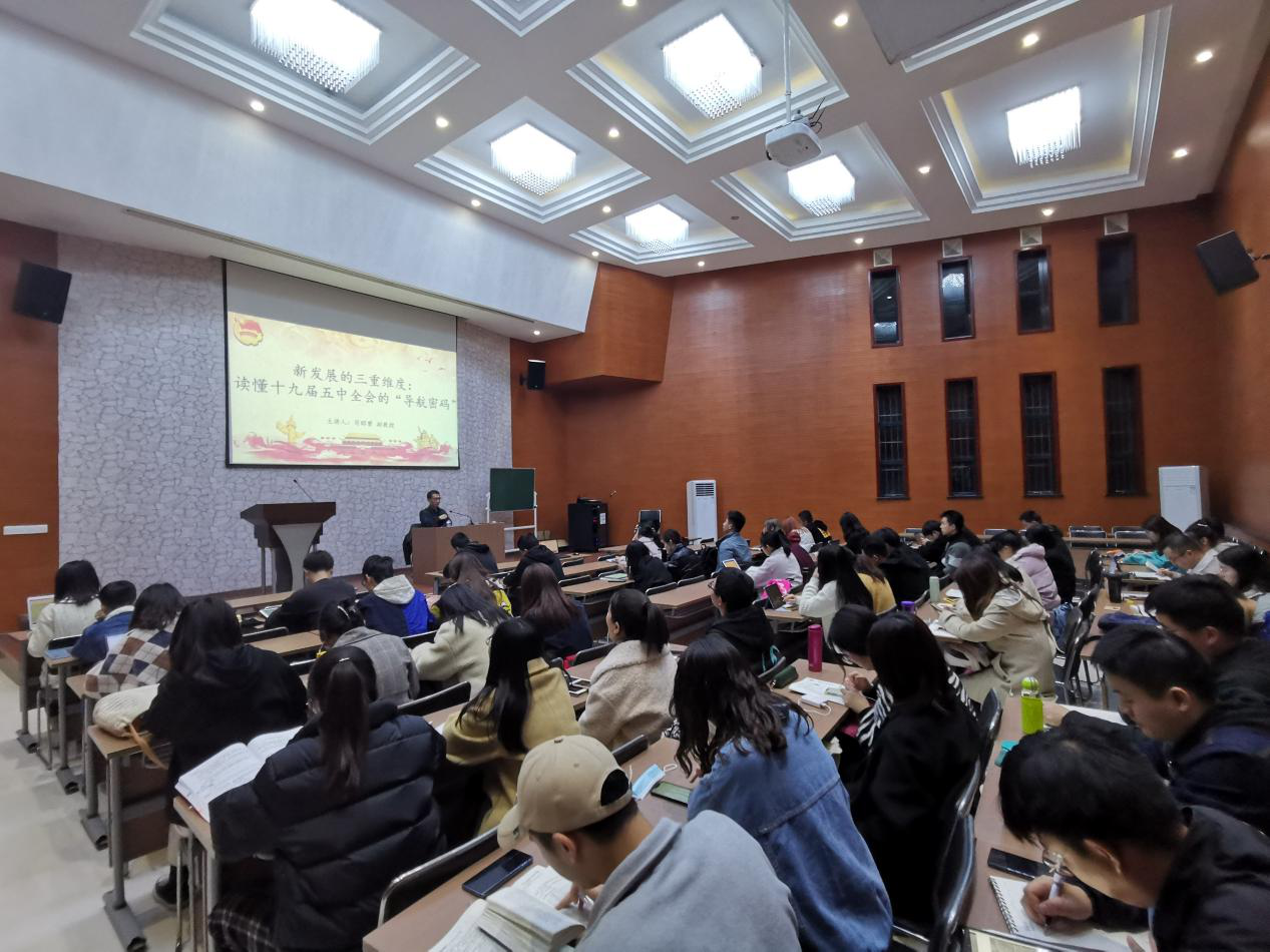 2020年1119日晚7点,由242net必赢太阳能共青团242net必赢(知识产权学院)委员会主办的2020年青年马克思主义者培养工程第二场讲座新发展的三重维度:读懂十九届五中全会的导航密码’”在我校基地报告厅顺利举办。本场讲座由院团委书记陈竟老师主持,242net必赢太阳能马克思主义学院苟昭贇副教授主讲。