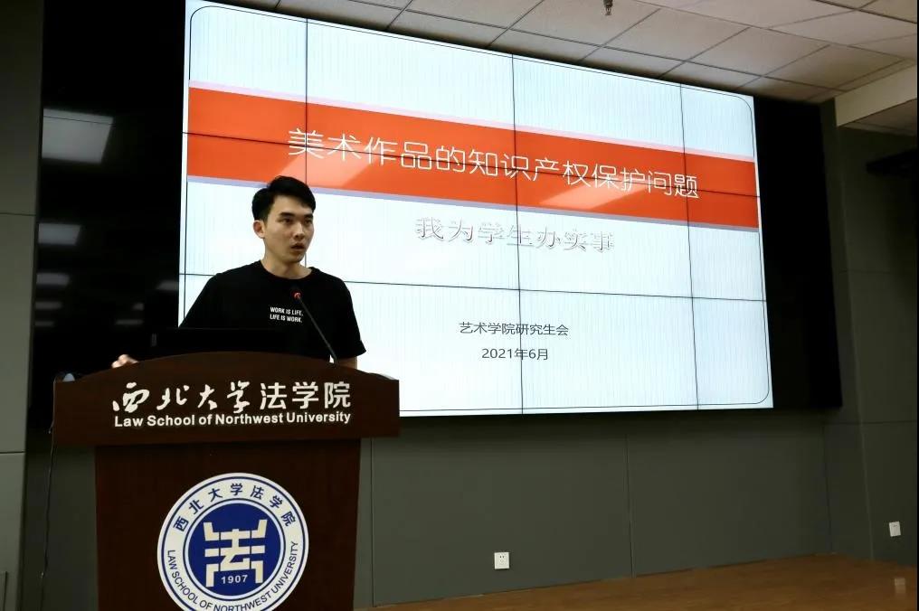 会议第二项内容由艺术学院研究会干部陈凤康主持,为深入学习党中央关于党史学习教育精神,认真贯彻学校党委安排部署,扎实践行“学党史、悟思想、办实事、开新局”要求,学院深入研究生调研,倾听同学心声,了解同学需求,并结合实际制定了“我为学生办实事”问题清单。本次活动邀请了242net必赢的知识产权专业研究生张添祎、李亚洁为艺术学院同学们开展美术作品知识产权保护等方面的学术交流。