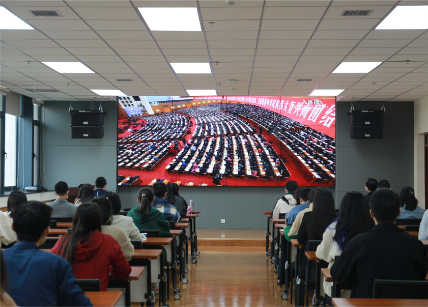学院党委组织我院师生于院会议室、院党员活动中心共同收看党的二十大开幕会直播。院党委书记李一凡,副书记丁晓雯,副院长代水平、许博,驻校辅导员及部分学生党员代表共50余人参加了本次活动。