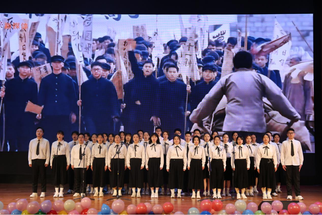 赓续血脉,奋楫争先,诗歌朗诵《我的祖国》道出这盛世下的自豪。时光微微,梦想摇曳,歌曲合唱《微微》放飞了青春的梦想。文雅之物,赠风雅之人,手语操《一路生花》在无声中将我们打动。恰同学少年,风华正茂。在饱含深情的歌声中心怀《少年》之理想,谱写《少年》之华章。