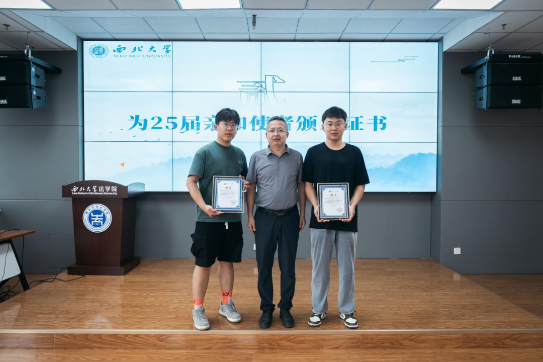 代水平为“2025届亲和使者”颁发证书;刘建仓、田海为优秀毕业生代表颁发证书。