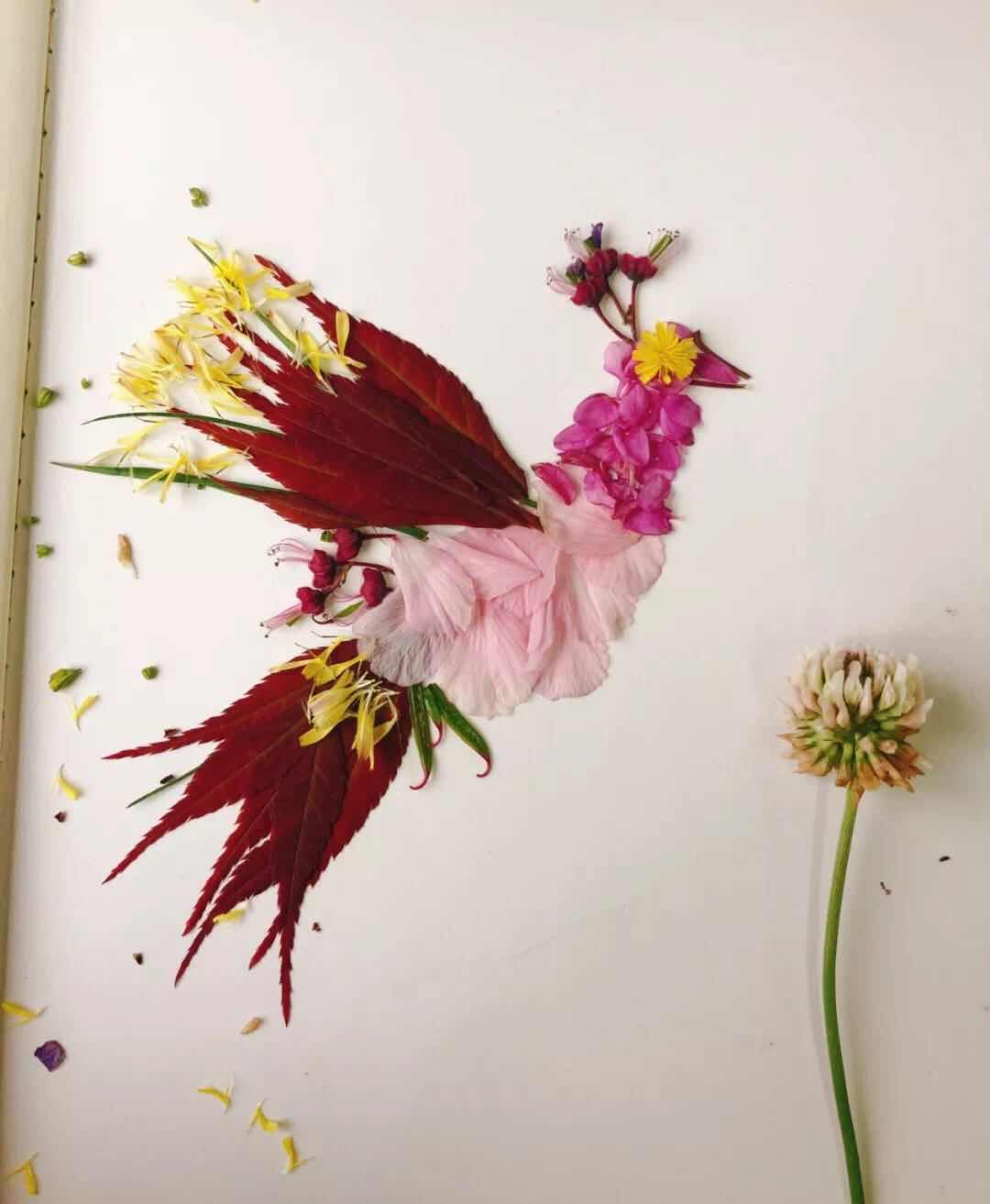 作品简介: 用树叶和鲜花组合在一起,拼出了一位新娘的模样,具有自用抽象的美感。