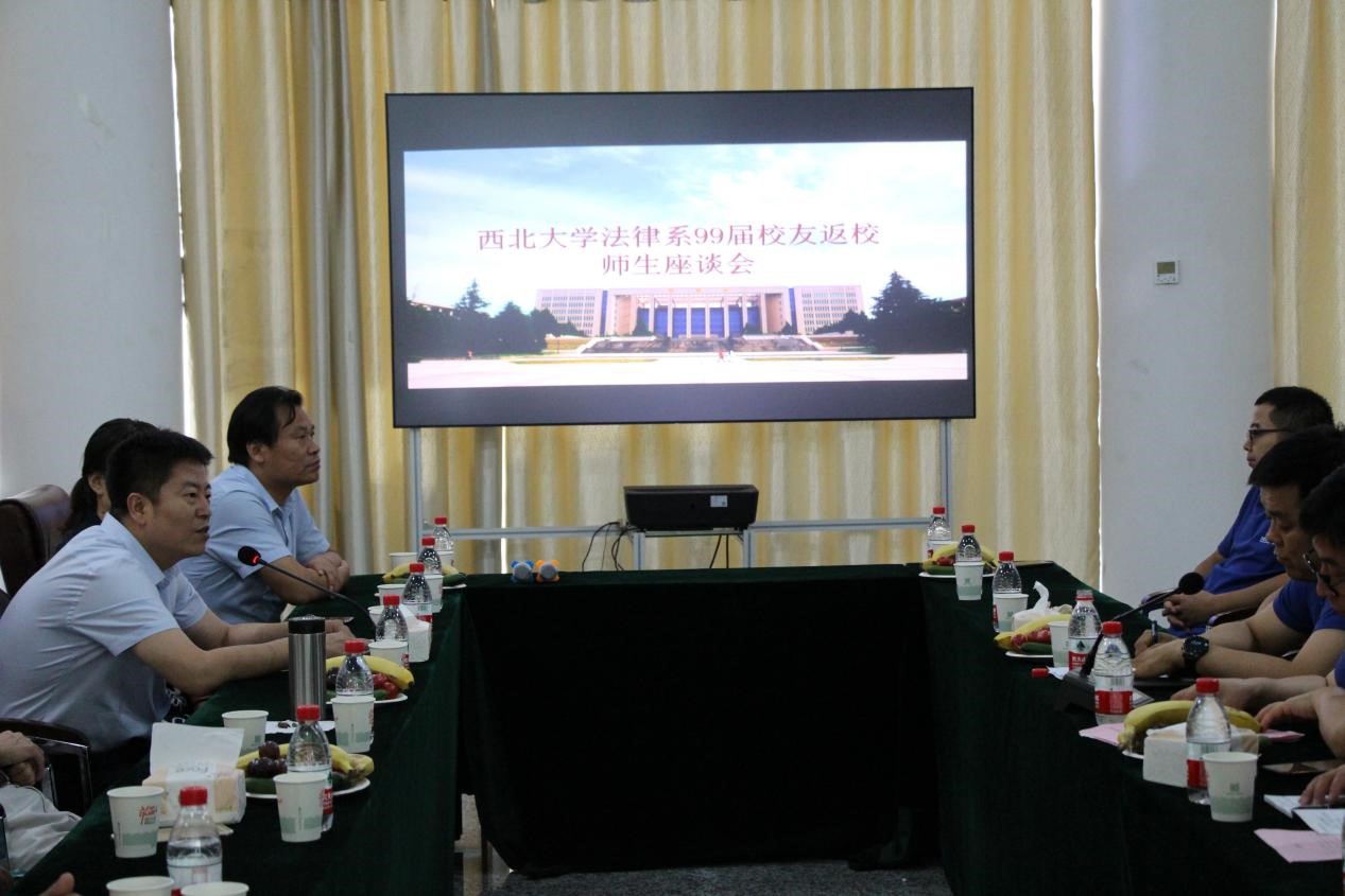 在座谈会上,李一凡书记代表学院对各位学院荣归母校表示热烈地欢迎!他向各位校友简要介绍了学院的发展情况。他说,在数代西大法律人的共同努力下,学院事业取得了飞速发展,取得了许多欣喜的成绩。这些成绩背后也凝聚着广大校友的智慧和力量。校友是学院的名片,是学院办学声誉的重要来源。各位校友在工作中,能够恪守公诚勤朴的校训,在各自的岗位上取得了非常优异的成绩,为母校争了光,为学院添了彩,母校以你们而自豪!祝愿各位校友工作顺利,身体健康、家庭幸福,希望各位校友常回家看看,母校师生随时在这里迎接各位校友回家!
