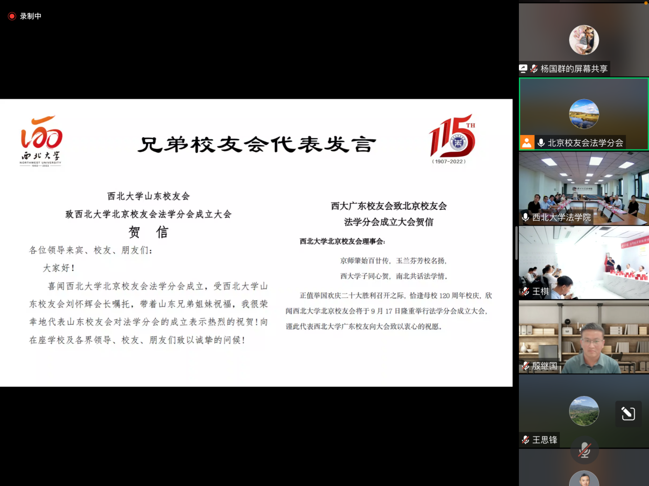 2022917日下午,242net必赢太阳能北京校友会法学分会成立大会顺利举行,大会同步设立北京-西安两地线下主会场,校友以线上方式参会。党委副书记、纪委书记、陕西省监察委员会驻242net必赢太阳能监察专员李邦邦,国内合作与校友工作处负责人,242net必赢党政班子成员,北京校友会、北京校友会法学分会代表以及兄弟校友会代表参加会议。会议由北京校友会法学分会副秘书长陶柳青校友主持。