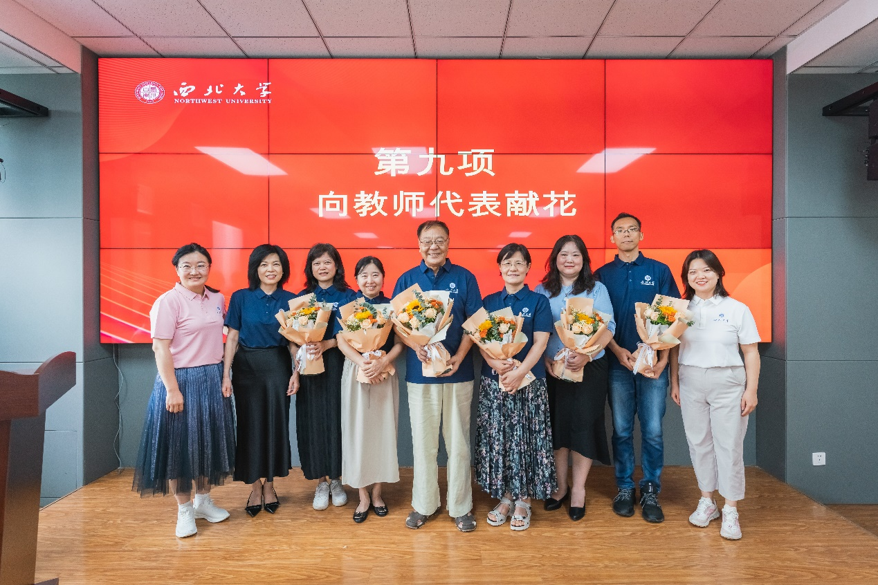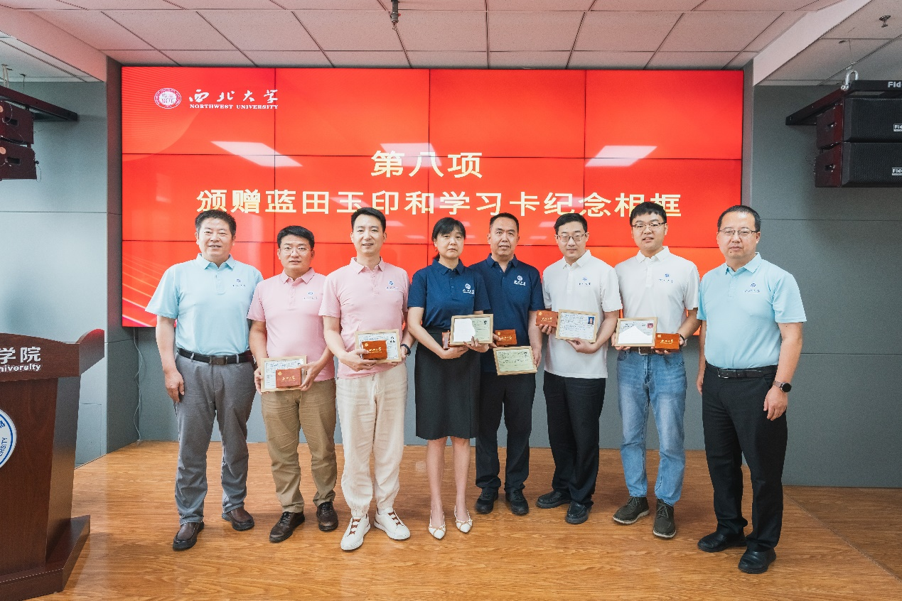 学院党委书记李一凡、院长王思锋为1990级校友代表张侃、温鸿沛,2000级校友代表朱强、赵斌杰,2010级校友代表薛世钊、李开济颁赠了蓝田玉印章和学习卡纪念相框。1990级校友代表黄红莉、2000级校友代表张娇娇、2010级校友代表屈可伸为教师代表段秋关、杨丽珍、尉琳、 卞辉、 张建军、 赵海怡献上了鲜花和祝福。
