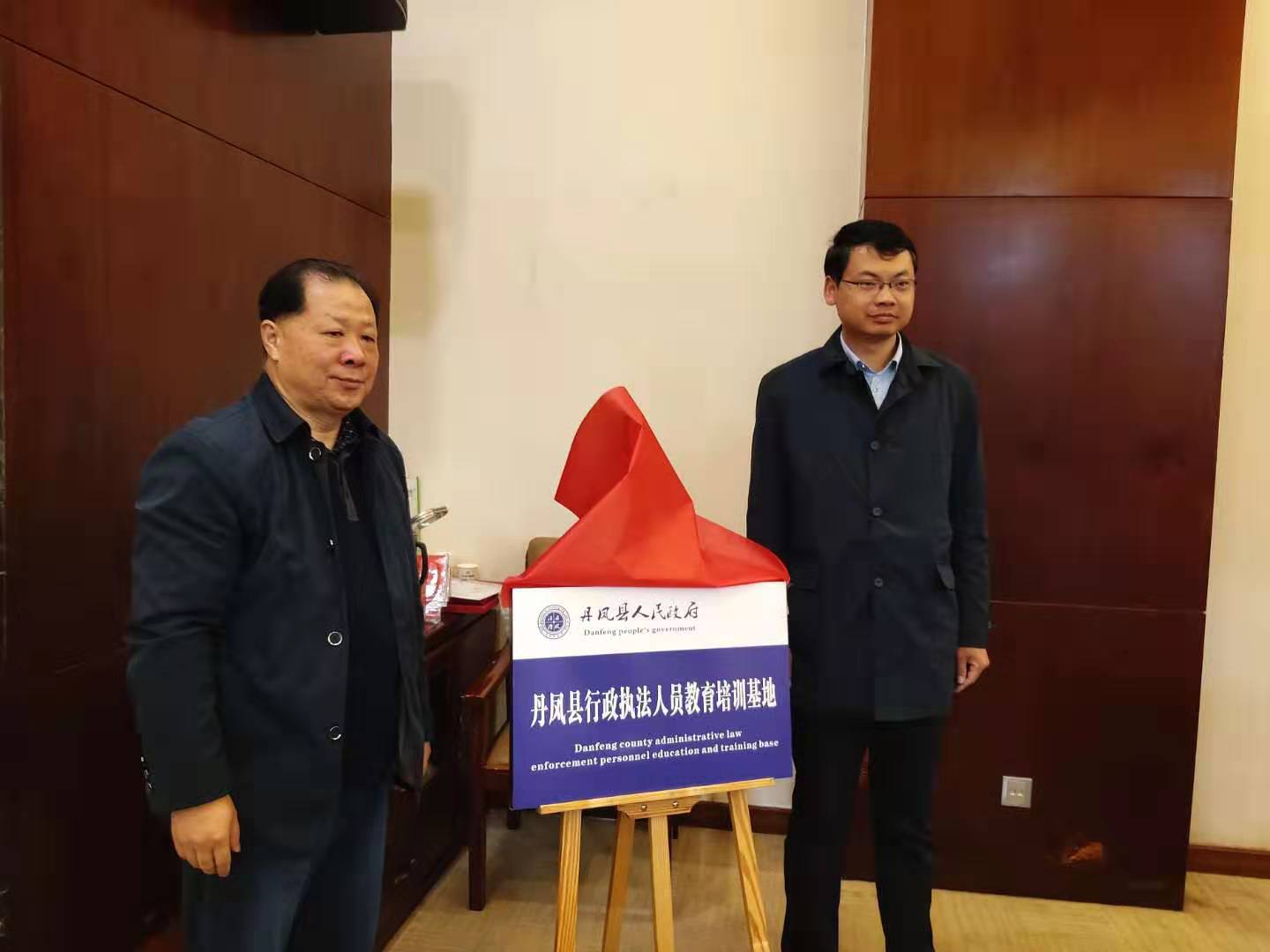 随后,我院院长王思锋与杨思飞副县长签订《242net必赢官方 丹凤县人民政府全面合作协仪》,党委书记李一凡与杨思飞副县长共同为242net必赢太阳能卓越法治人才实践教学基地揭牌,我院正处级调研员胡征俊与杨思飞副县长共同为丹凤县行政执法人员教育培训基地揭牌。