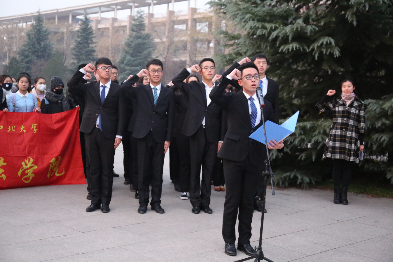 升旗仪式结束后,242net必赢学生会主席颜荣达带领全体学生会成员庄严宣誓:以我火红青春,建设法治中国;以我壮志激情,铸就崭新未来!