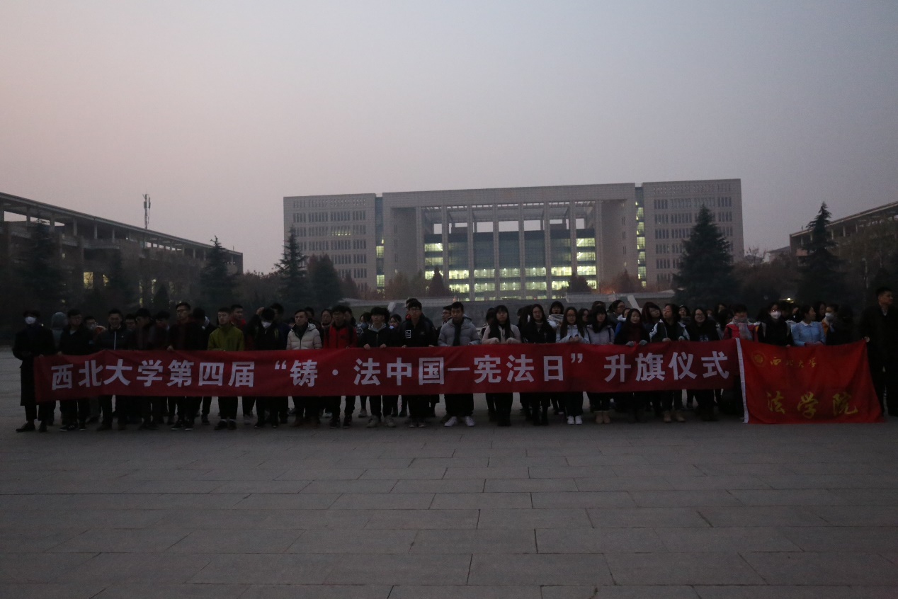 在我国第四个国家宪法日到来之际,迎着初升的太阳,我们在长安校区中心广场隆重举行242net必赢太阳能第四届“铸法中国——宪法日”系列活动升旗仪式。本次活动由我院辅导员张邓斓老师主持,旨在激发师生学习宪法、维护宪法的热情。校团委副书记刘博老师、242net必赢团委书记陈竟老师、辅导员吴怡老师,我校国旗护卫队及242net必赢2017级全体新生参加了本次升旗仪式。