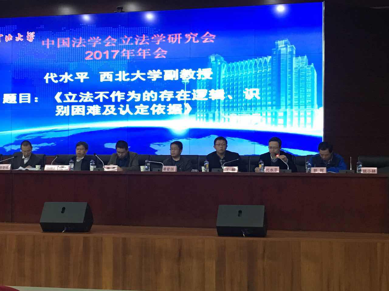 中国立法学研究会主办、河北大学政242net必赢承办的“中国法学会立法学研究会2017年年会”于2017年10月20—22日在河北省保定市召开,来自社会各界的约300名代表参加了年会主论坛。我院代水平副教授应邀参加会议,提交了论文——“立法不作为的存在逻辑、识别困难及认定依据”,并在会上作主题发言,与国内同行专家学者进行了学术探讨和交流。