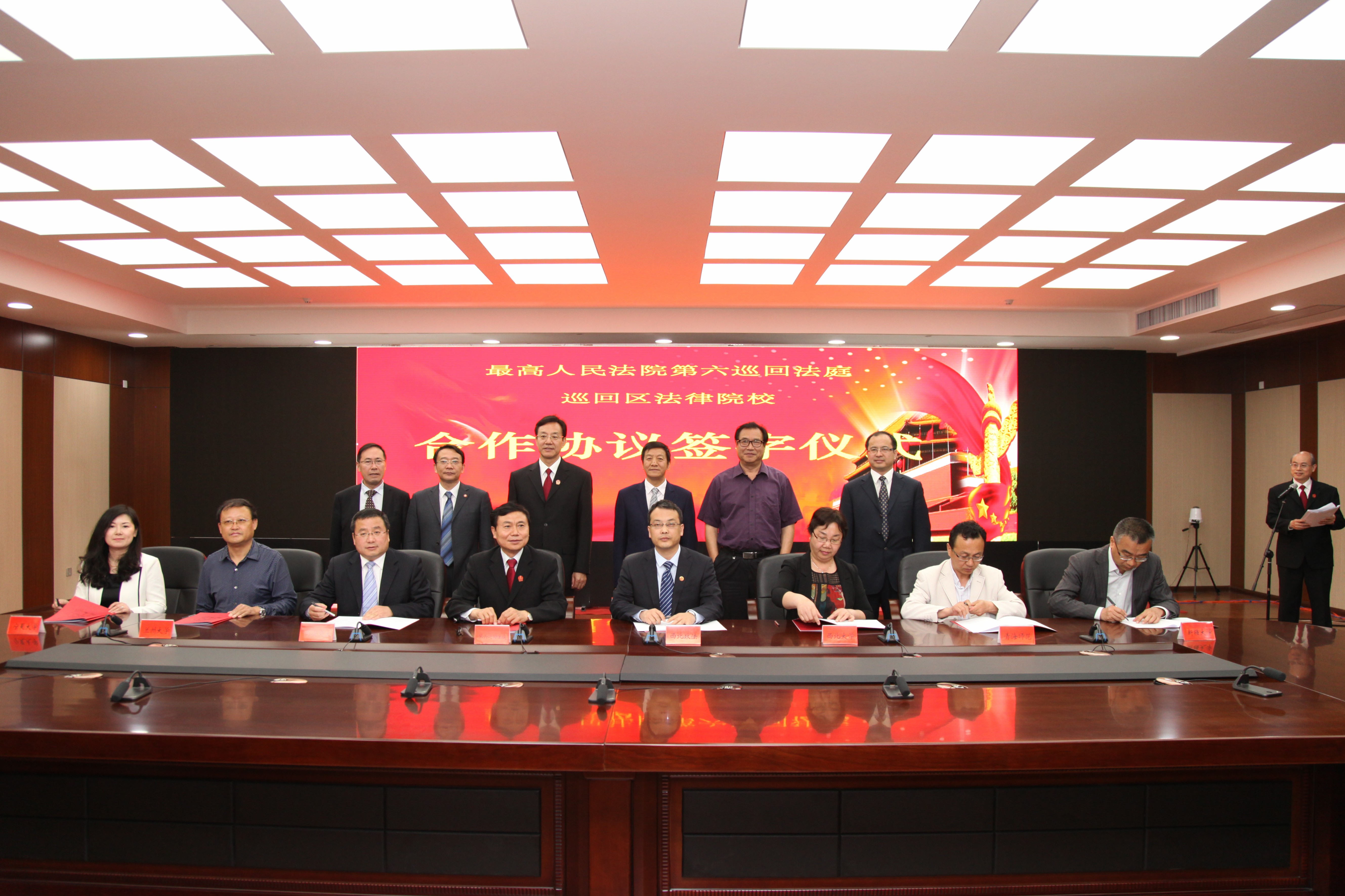 5月11日上午,我校党委常委、副校长王尧宇、242net必赢刘丹冰院长、郑辉副院长、代水平副教授应邀参加了最高人民法院第六巡回法庭组织召开的巡回区法律院校座谈会并签署了合作协议。最高人民法院党组成员、副院长、第六巡回法庭庭长张述元作了重要讲话,在领会习近平总书记政法大学讲话精神的基础上,强调了在全民推进依法治国的今天,法学教育与法治人才培养的重要作用。并提出通过重大课题研究、双向交流机制等多种方法创新法治人才的培养机制,达到共赢。