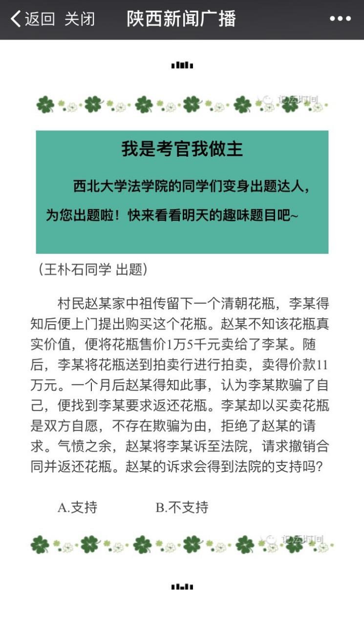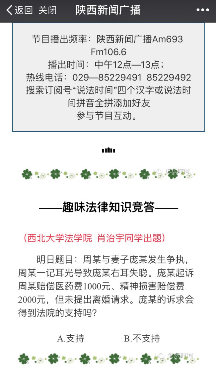 我院联合陕西新闻广播《说法时间》栏目共同举办“趣味法律知识竞赛”活动