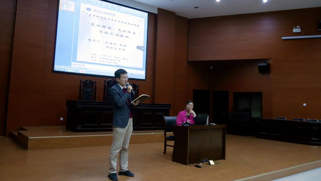 10月23日,由学校研究生院、研究生工作部主办,学院承办的“导师讲坛”第144讲在长安校区模拟法庭顺利举行。学院刘丹冰教授受邀做了题为“文化强国、文化权与法治建设”的学术报告。本次“导师讲坛”是第十四届研究生学术活动月系列讲座之一,学院教师吕康宁等180余名师生参加了此次活动。