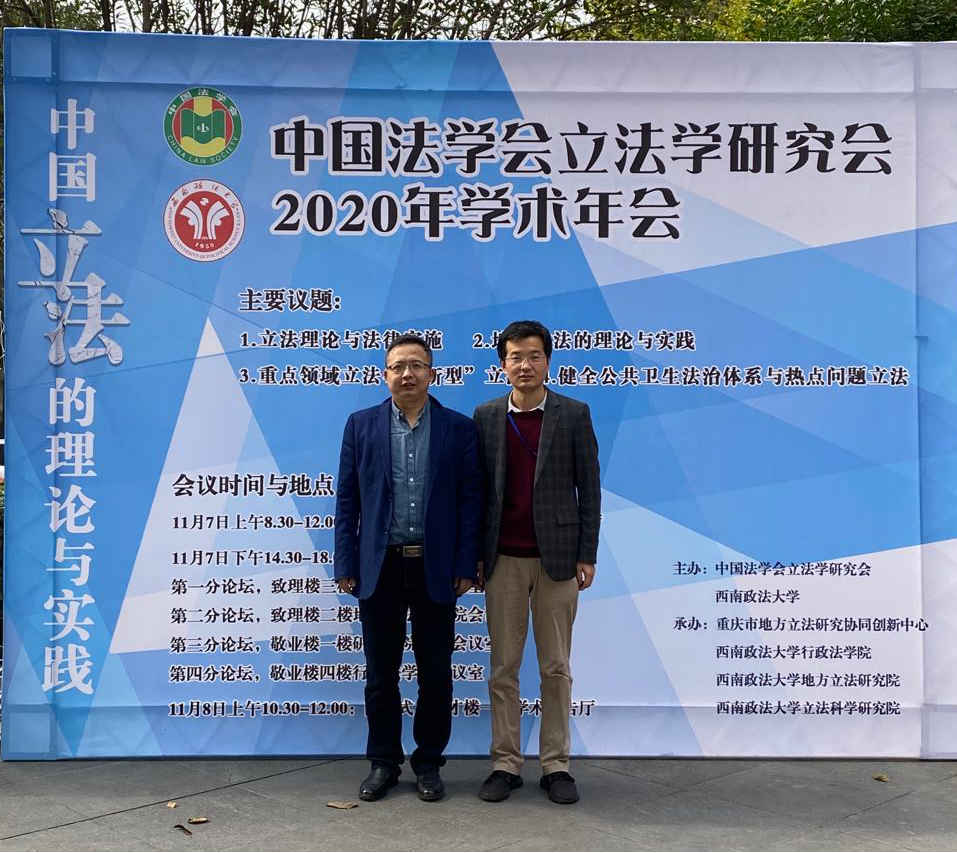 2020年11月7-8日,由中国法学会立法学研究会主办,西南政法大学承办的中国法学会立法学研究会2020年学术年会在重庆召开。本届年会以“中国立法的理论与实践”为主题,来自全国各地高等院校、科研机构和立法实务部门的专家学者近400人参会,收到学术论文260余篇。我院代水平副教授、吕康宁博士应邀参加了此次年会,并分别向年会提交了题为《设区的市立法之“城乡建设与管理”的规范与实践》《环境资源的地方立法:规范、实效与测评——给予陕西省的考察》的研讨论文,并作了分论坛主题发言。