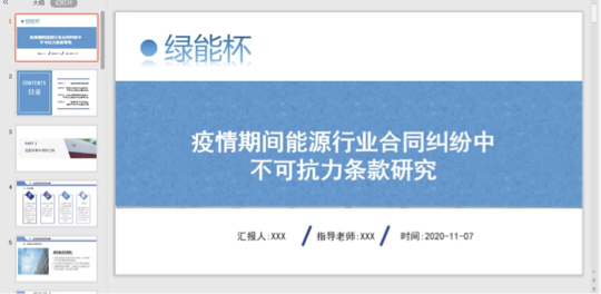2020年6月,在张曼副教授指导下,由学院研究生杜维娜、蒙娜和本科生翟雪健、阿尔曼江·吾买尔江组成的调研组,围绕竞赛主题,先后召开线上线下论证会议数十次,周密论证了调研大纲,科学设计了调研问卷,扎实组织了调研活动,最终形成了数据详实、论证严谨、结构合理、建议中肯的调研报告,字数达2万余字。调研报告以“疫情期间能源行业合同纠纷中不可抗力条款研究”为主题展开,对新冠疫情给能源行业造成的能源合同履行不能问题进行了深入探讨。调研小组在理论界已就新冠疫情作为不可抗力基本达成肯定意见的基础上,通过实证分析,比较了“非典”期间和新冠期间疫情作为不可抗力在能源合同纠纷中的应用,发现了以下问题:一是新冠疫情比“非典”在认定疫情作为不可抗力的问题上支持率更高;二是能源企业在该类纠纷中多为主张不可抗力的一方;三是能源企业在举证方面仍有欠缺,不利于维护自身权益。基于此,调研报告提出相应的对策建议。能源企业在主张疫情作为不可抗力时,应当积极准确评估疫情对合同履约的影响,同时注意不可抗力发生后的通知和减损义务之履行,建议能源企业以书面形式对相关证据及时留存;为预防疫情等突发状况的不利影响,能源企业可以通过合同免责条款的列举设计和概括设计提前做好纠纷解决的应对预案,也可以通过前期的风险管理来降低损失。