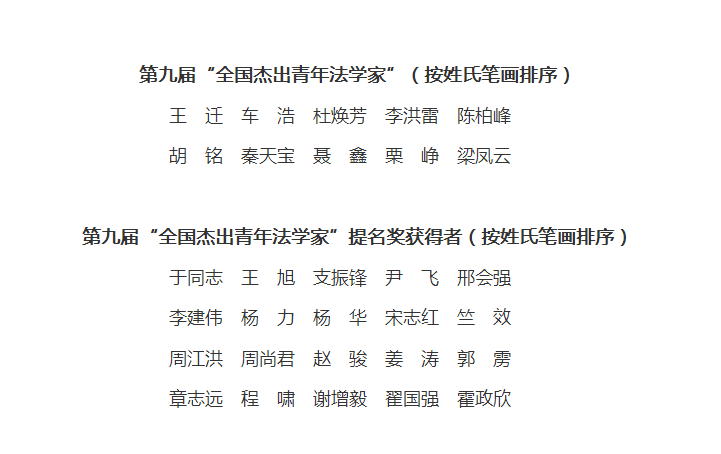 热烈祝贺我院王迁、支振锋校友分别荣获第九届“全国杰出青年法学家”和提名奖