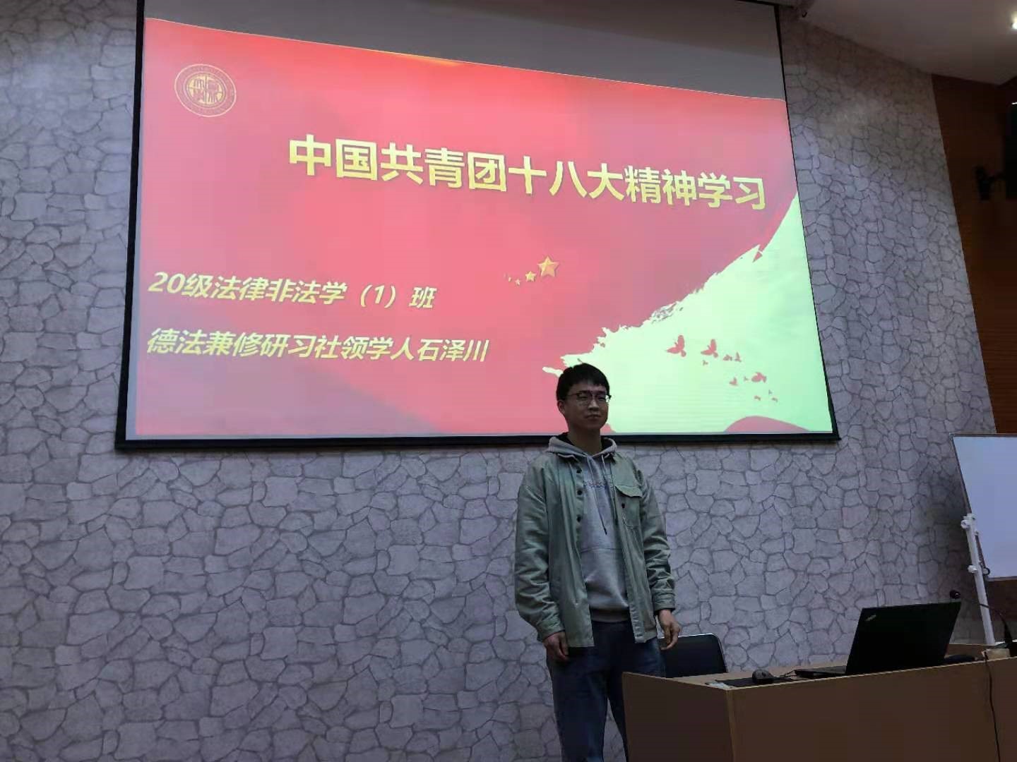 2020法硕(非法学)1班周全:在中国共青团十八大精神学习的过程中,会议强调的四个方面的革新令我印象深刻。第一,思维理念革新。我们的思维方式应该更加精确理性,避免过于感性和模糊的认知。第二,管理机制革新。将管理模式系统化,精细化,标准化尤为重要。第三,能力素养革新。各级团干部应该紧跟时代需要,积极响应号召,不断提高各方面能力水平。第四,作风习惯革新。我们应该拿出自我革命的精气神,养成良好习惯,一步一个脚印,为中国共青团的发展贡献一份力量。