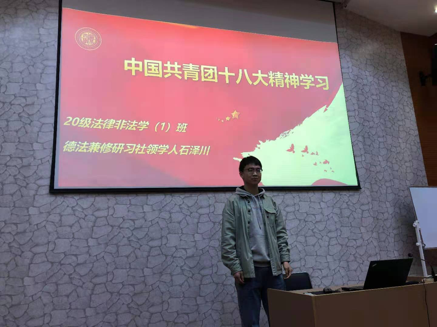 2021年3月8日,第三场团组织生活会召开。20级法硕(非法学)1班在德法兼修研习社领学人石泽川主持下,全体团员青年深入学习了团的十八届五中全会精神。通过学习,明白了全团要紧紧围绕“十四五”开局之年各项目标任务和庆祝建党100周年这一主题主线,按照“三力一度”的新时代共青团工作布局,以深化改革和从严治团为保证,有效引领凝聚青年、组织动员青年、联系服务青