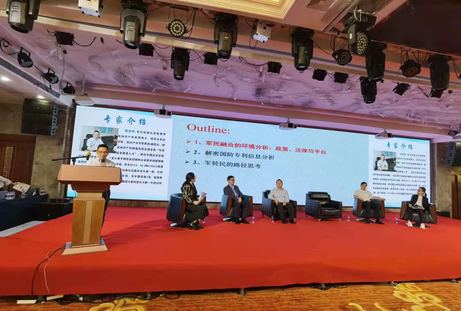 论坛由五场主题报告与两场圆桌论坛组成,拟探讨国防知识产权保护、国防知识产权建设、国防知识产权人才培养等议题。我院副院长邱洪华教授受邀参加圆桌论坛《国防知识产权保密制度建设》部分的研讨,并作为发言嘉宾作了《解密专利视角下军转民的现状与路径》的主题报告,就军民融合过程中的专利情报利用与平台建设等内容发表了自己的观点与意见。