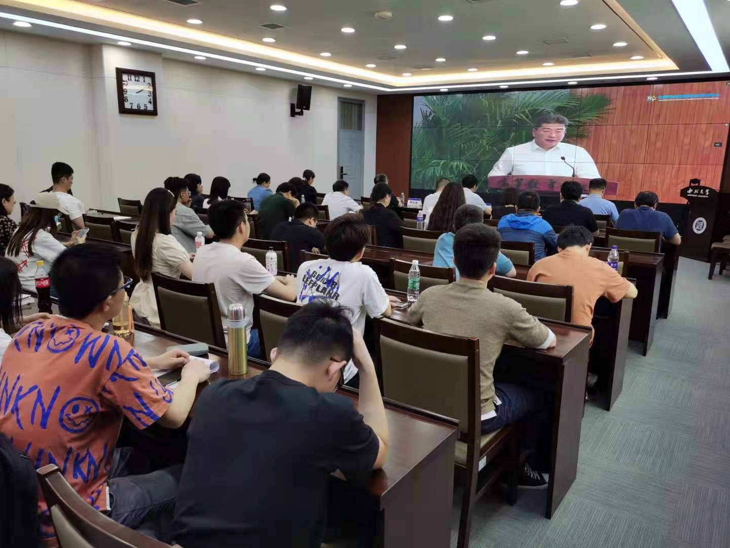 我校在长安校区设立“习近平法治思想大讲堂”启动仪式分会场,校党委书记王亚杰,校党委副书记、校长郭立宏,校党委常委、副校长奚家米,校教务处处长曹蓉、省法学教指委委员刘丹冰教授、学院党政班子成员、专业任课教师代表共计60余人在线参加了启动仪式。