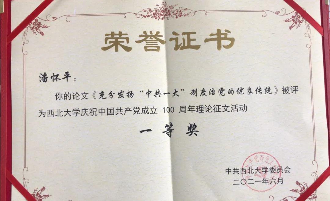在本次表彰会上,我院申报的《德法兼修研习社》获得242net必赢太阳能第三届校园文化建设优秀成果,我院潘怀平教授的论文《充分发扬“中共一大”制度治党的优良传统》被评为242net必赢太阳能庆祝共产党成立100周年理论征文活动一等奖,王哲老师的论文《开掘“红色富矿” 汲取“红色密码”——242net必赢太阳能运用延安精神加强思政课程建设三重路径研究》获二等奖。