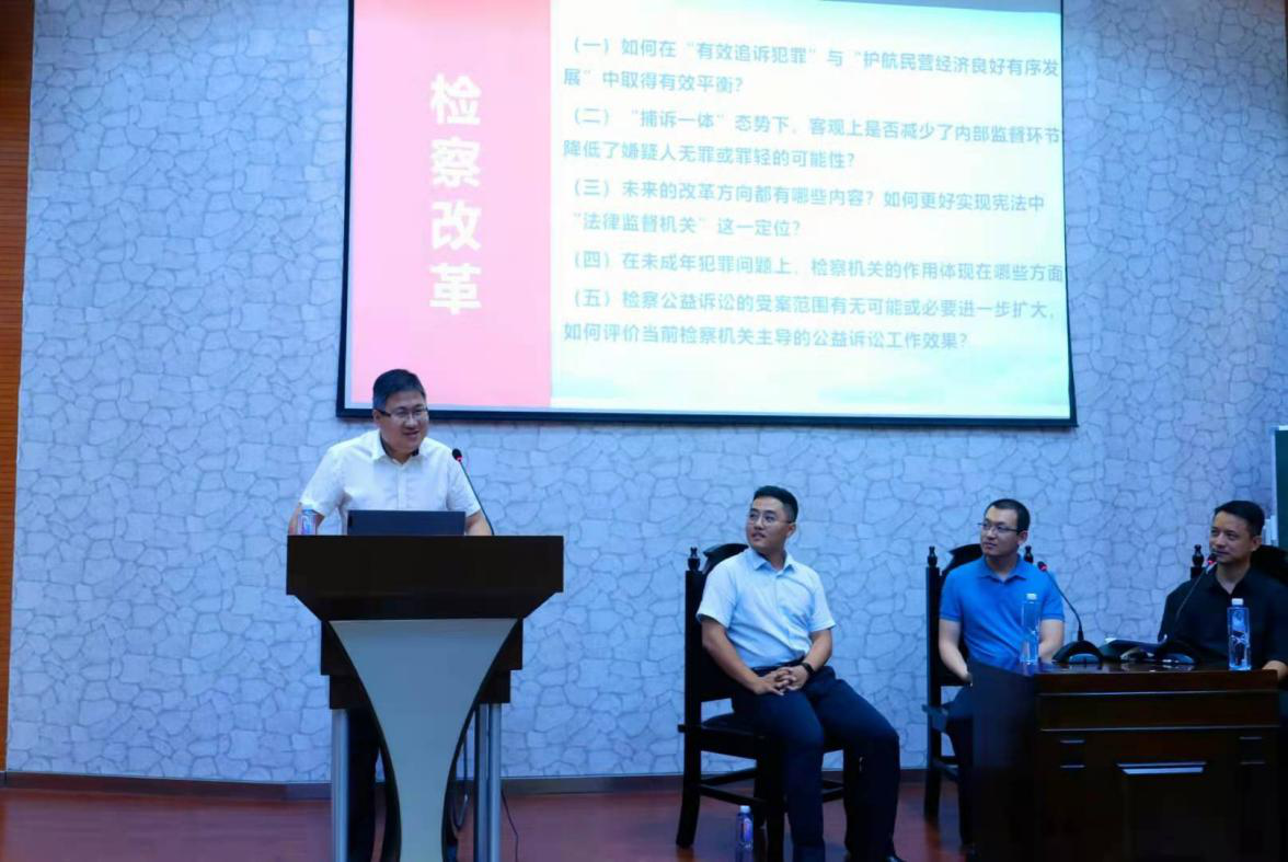 讲座伊始,苟震博士首先向在场同学们点明了本次讲座的意义所在——今年是中国共产党建党一百周年,昨天总书记刚刚发表了振奋人心的讲话。这是苦难中铸就辉煌、挫折后毅然奋起、探索中收获成功、失误后拨乱反正、转折中开创新局、奋斗后赢得未来的百年。今日,我们正站在实现“两个一百年”奋斗目标的历史交汇点上。对青年人而言,今天比任何时代都值得我们去奋斗!随后,本次活动围绕认罪认罚从宽制度、检察体制改革、企业刑事合规以及科学量刑四方面展开,与会嘉宾就上述问题进行了细致的探讨和解读。