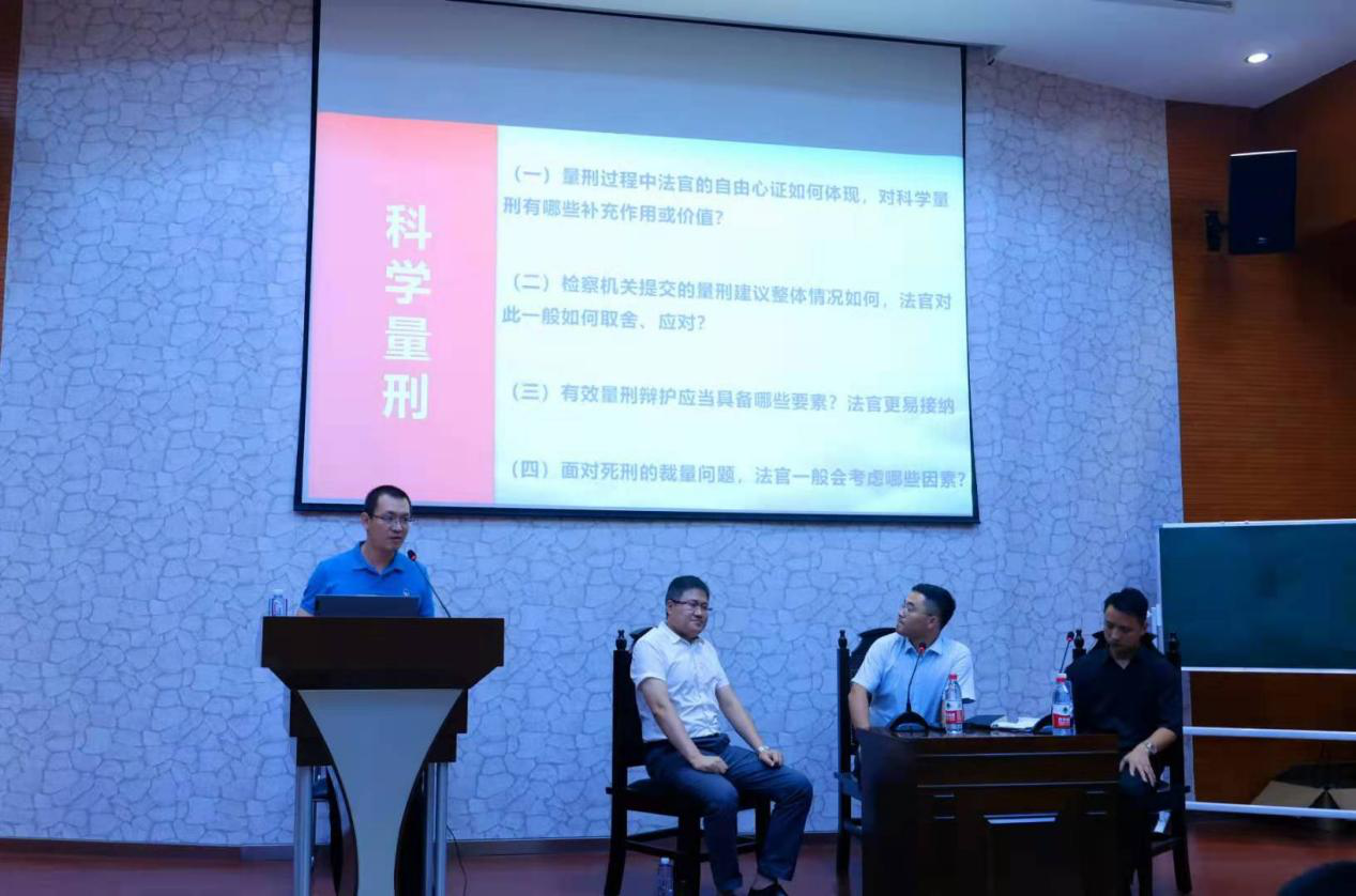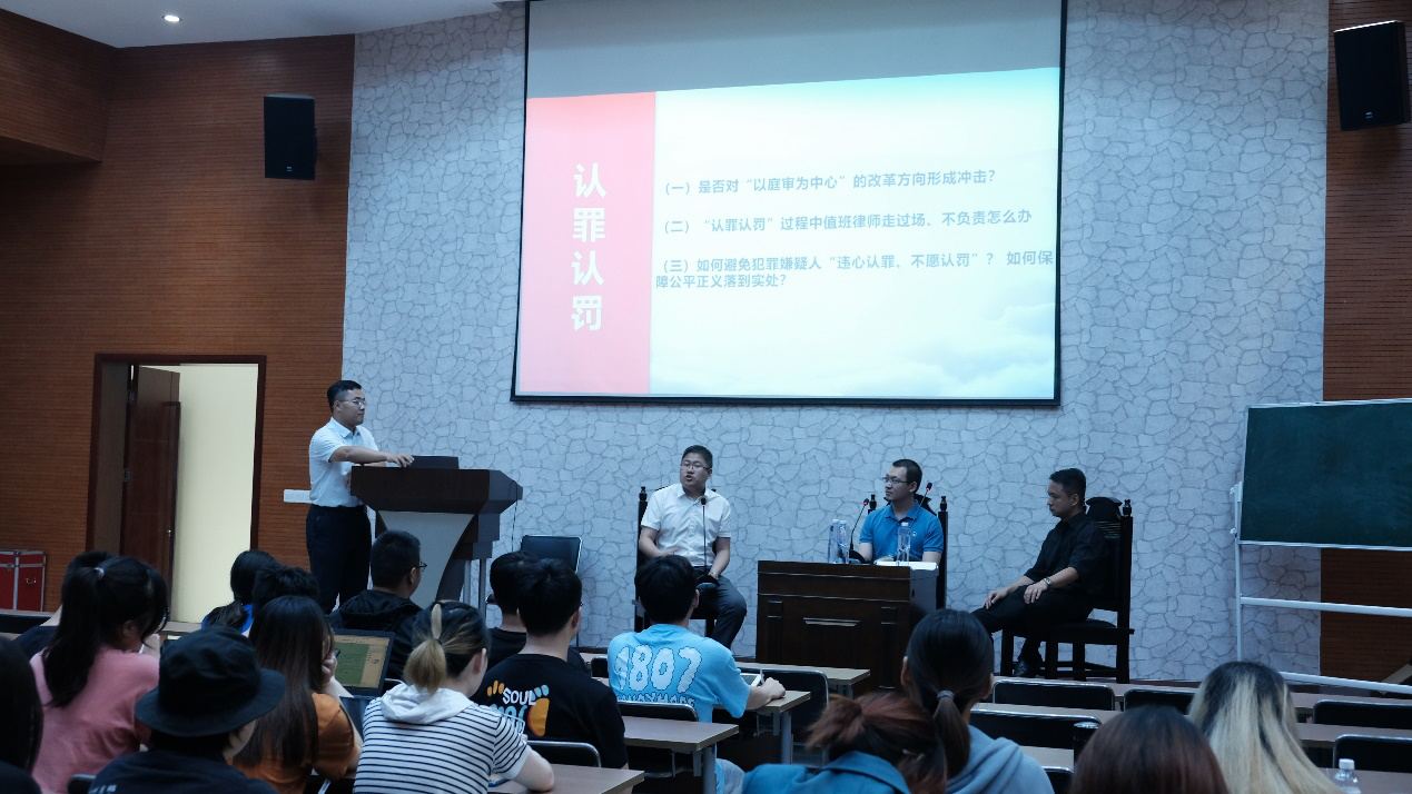 近日,为深入推进认罪认罚从宽制度的有效实施,深化落实我院与政法实务机关的合作协议,有效提升我院学生的司法实践能力,进一步落实我院教学实践周系列活动方案。我院在国家知识产权培训基地报告厅举行了 “控、辩、审”三人谈活动。
