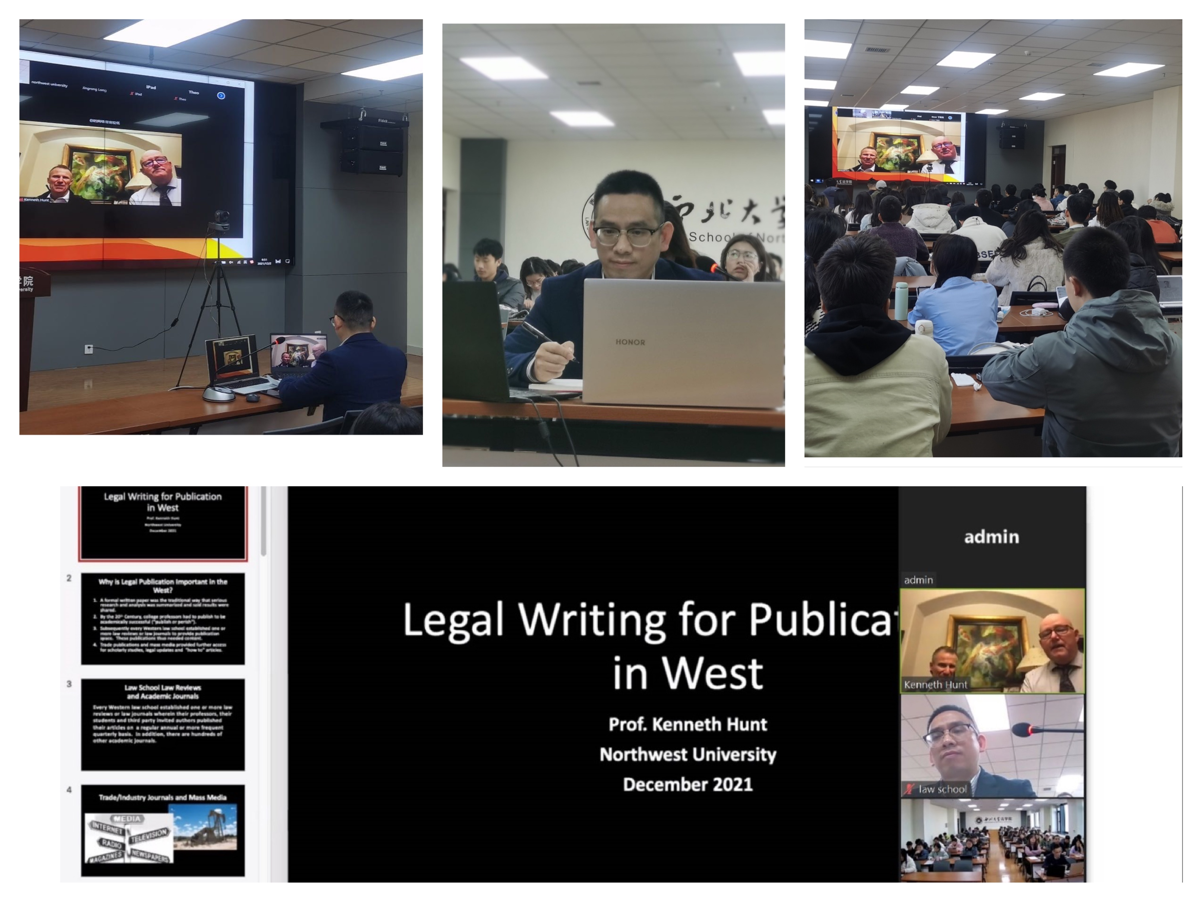 为全面提升全院师生的英语论文撰写与发表能力,2021年12月2日上午,法学院“英语论文的撰写与发表”讲座在西学楼0904举行。本次讲座邀请到的主讲嘉宾是我院长聘外专、美国财税法专家Kenneth Louis Hunt教授和美国历史学Lain Anderson教授。讲座由242net必赢官方·知识产权学院副院长邱洪华教授主持,学院龙井瑢副教授、赵海怡副教授、李奕霏副教授、彭秀坤副教授、阿力博士、全体国际法留学生和部分国内研究生共计70余人参加了本次讲座。