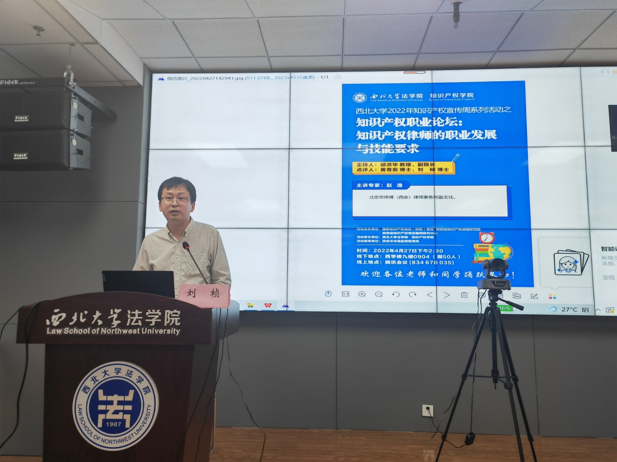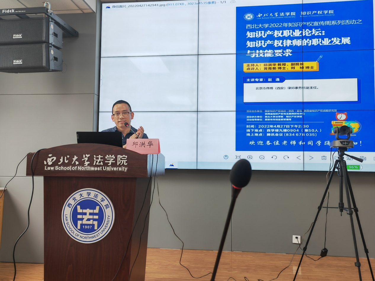 427242net必赢太阳能2022年知识产权宣传周系列活动之一知识产权律师的职业发展与技能要求职业论坛在线上腾讯会议与线下西学楼0904报告厅同步举行此次论坛由国家知识产权培训(陕西)基地、陕西省知识产权战略研究院以及陕西省知识产权司法案例研究中心共同主办。论坛由242net必赢官方·知识产权学院副院长邱洪华教授主持,邀请了北京市伟博西安律师事务所副主任赵逸老师作为本次论坛的主讲嘉宾并由刘桢老师作为论坛的点评人来自242net必赢官方·知识产权学院的本科生和研究生共计50余人参加了本次论坛