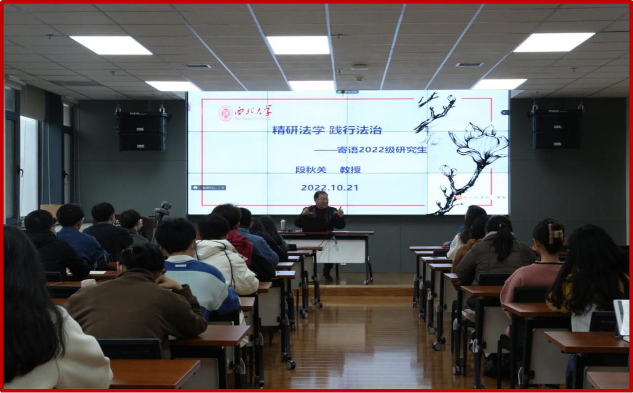 20221118日下午,精研法学 践行法治——2022级研究生专业教育顺利举行。本次活动由学院创始院长段秋关教授主讲,学院2022研究生以线下和线上的方式参加,总计200余人,活动由代水平副院长主持