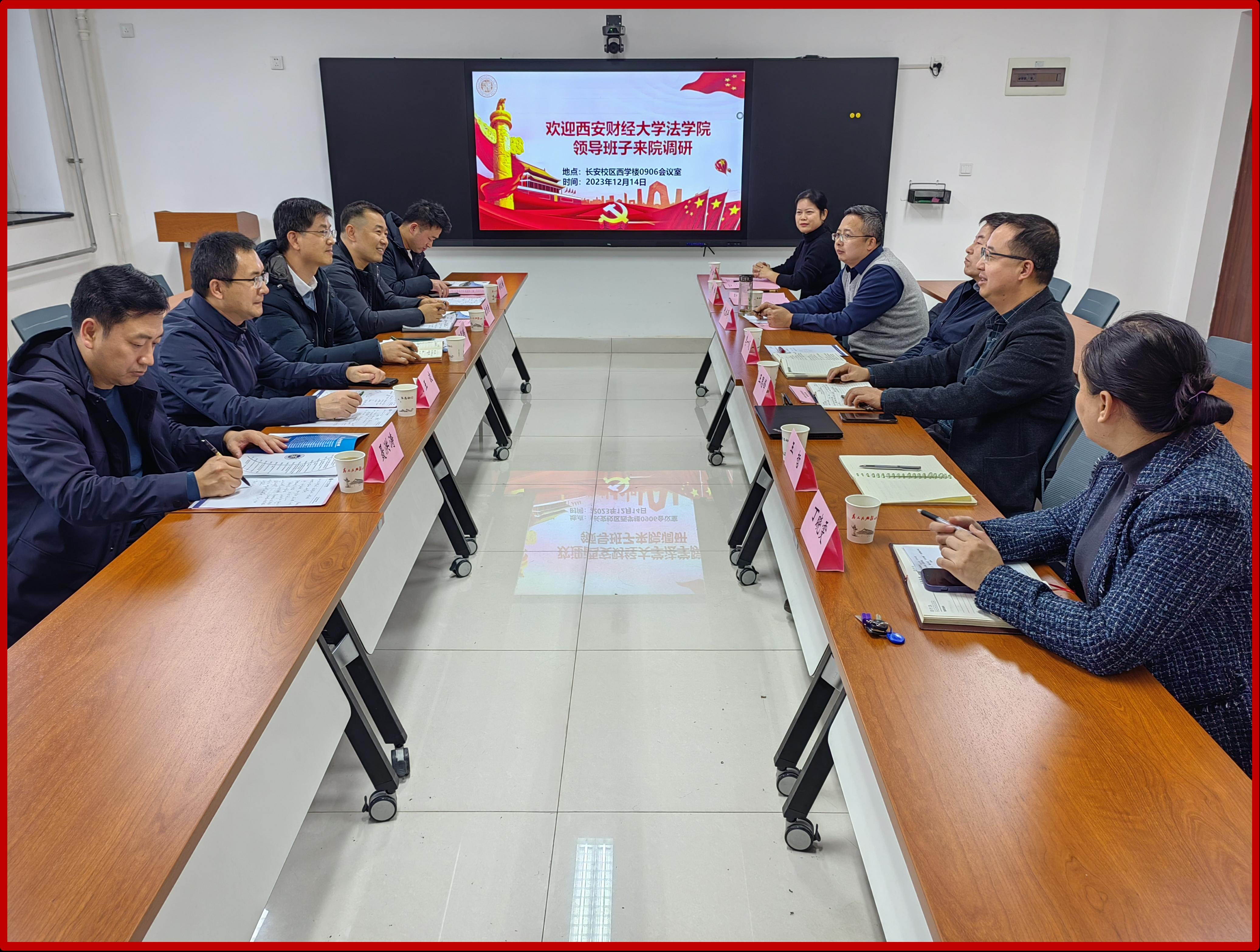 2023年12月14日下午,西安财经大学242net必赢党委书记田亚鹏,党委副书记、院长王波,副院长聂洪涛、康京涛,学院团委书记吴乐一行5人到访我院,在西学楼北0906会议室召开了座谈会。学院党委书记李一凡,党委副书记、院长王思锋,院党委副书记丁晓雯,副院长代水平、许博,学院工会主席卞辉,学院办公室主任王哲等参加座谈。座谈会由王思锋院长主持。