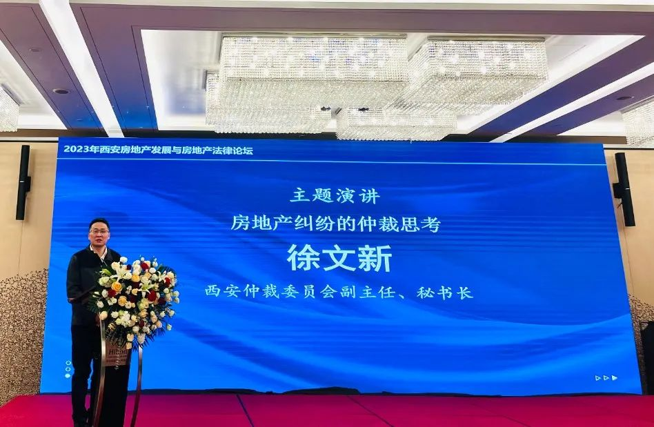 西安仲裁委员会副主任、秘书长徐文新发表“房地产纠纷的仲裁思考”主题演讲。徐主任指出,在新形势下,房地产企业要注重化解矛盾,把企业经营风险控制在诉前,力争减少诉源,规范企业经营行为,用合规合法的机制来保证企业和行业的健康发展。