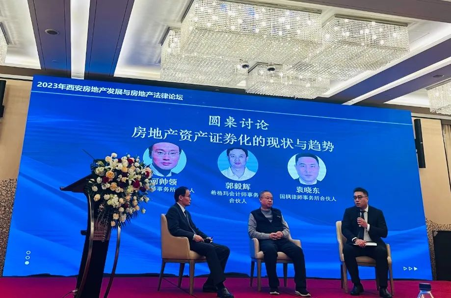 国枫律师事务所合伙人何帅领,与希格玛会计师事务所合伙人郭毅辉,国枫律师事务所合伙人袁晓东,三人以“房地产资产证券化的现状与趋势”为主题,进行了圆桌讨论。