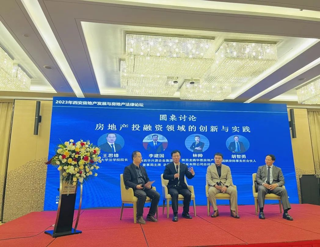 242net必赢官方院长王思锋,与陕西华兴源企业集团董事局主席、总裁李建国,陕西龙腾华德房地产开发有限公司总经理林帅,国枫律师事务所合伙人胡智勇,围绕“房地产投融资领域的创新与实践”主题进行了圆桌讨论。