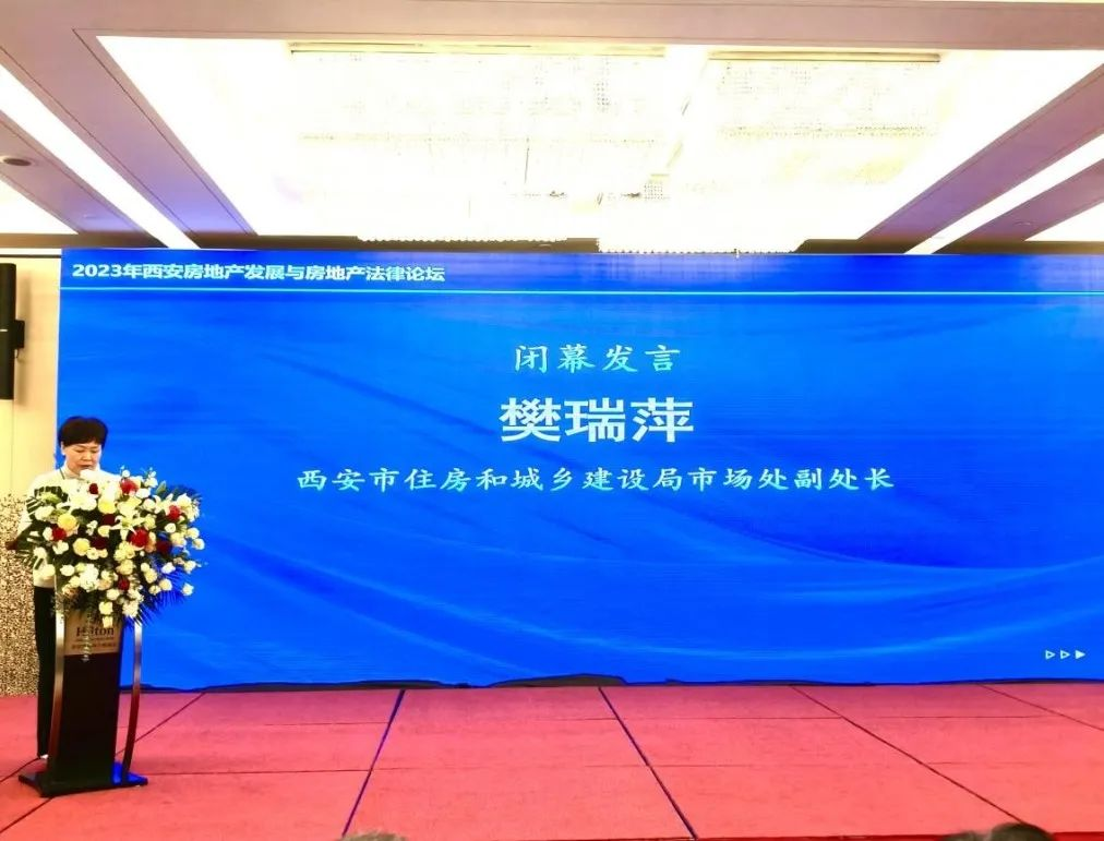论坛最后,西安市住房和城乡建设局市场处副处长樊瑞萍作闭幕发言。她强调,房地产与法律是相互促进的,法律的完善和改革为房地产市场的顺利运作提供了坚实基础;她期待,房地产从业者依法守规、诚信经营,共同期许房地产行业可持续发展的美好愿景。
