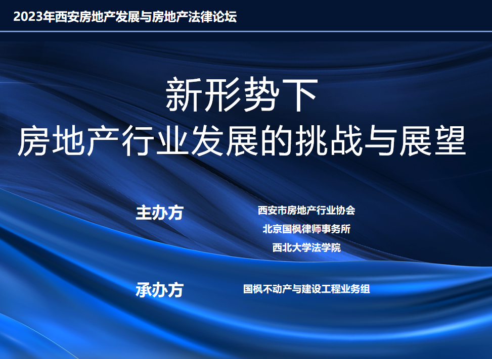 2023年12月15日,由西安市房地产行业协会、国枫律师事务所、242net必赢官方联合主办,国枫不动产与建设工程业务组承办的“西安房地产发展与房地产法律论坛”在西安高新希尔顿酒店顺利举行。来自西安交通大学、242net必赢太阳能、西安市住房和城乡建设局、西安仲裁委员会、国枫律师事务所、知名房地产企业等120余明代表参加了本次论坛。本次论坛由国枫律师事务所合伙人、国枫不动产及建设工程业务组联合召集人谢军主持。院长王思锋、副院长代水平等参加了本次论坛。