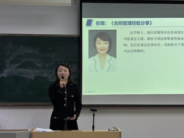 在实务分享环节,陕西燃气集团法务部部长张珺结合自身执业经历,与大家分享了合同管理中的经验。她强调,作为企业法务,一定要深入学习企业运营和行业业态,以便更好地为企业提供专业的法律服务和风险管理。在合同审查过程中,要熟悉本企业常用的几种合同类型,关注合同相对方,严格仔细把握合同用语,在条款权利义务设定上,从国有企业特殊的市场地位出发,秉持公平正义原则,兼顾企业利益和社会责任。最后,她为同学们点明,法律专业在市场中的作用,是服务、保护和促进社会经济的运行这要求法务人员着眼于经济活动的全过程,不囿于本专业本领域,理解企业远景目标,配合企业长远发展。
