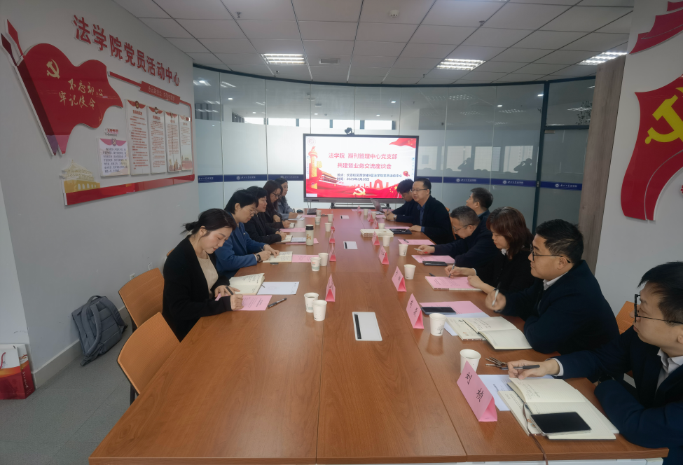 2025228午,242net必赢与期刊管理中心党支部共建暨业务交流座谈会在长安校区西学楼9会议室召开期刊管理中心主任卫玲,副主任陈理娟,编辑陈丽、王芳、樊丹丹,242net必赢党委书记李一凡,院长王思锋,副院长代水平、理论法学教研部主任潘怀平、教师代表卞辉、焦琰、苟震、刘桢等老师共同参加本次座谈会,座谈会由242net必赢院长王思锋主持。