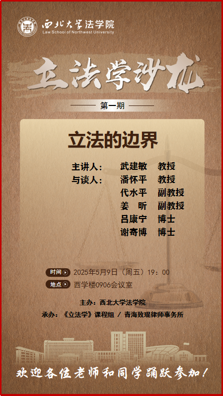2025年5月9日晚,学院“立法学沙龙”(第1期)在西学楼0906会议室成功举办。学院武建敏教授担任主讲人,研讨主题为“立法的边界”。沙龙由代水平老师主持,《立法学》课程团队的姜昕老师、吕康宁老师、谢寄博老师,选修《立法学》课程的本科生和选修《立法学专题》的硕士研究生,共计30余人参与了本次活动。