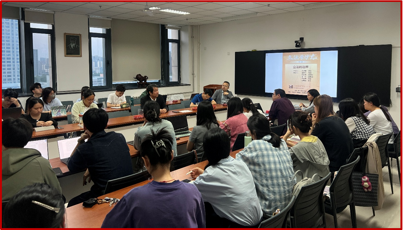 武建敏老师结合孔子、柏拉图等中西先哲们的论述,从本体论、辩证法等视角深刻剖析了立法及其在社会治理中的作用,认为过度依赖大规模立法来推动法治建设的路径值得反思,立法者要有节制的美德,否则制定出的法律也难以执行,最终会损害法律的权威,也会偏离人类所追寻的“恰当的生活”的目标。随后,几位老师和多名同学分享了各自对立法边界问题的看法。现场气氛热烈而轻松,师生互动频繁,取得了很好的效果。