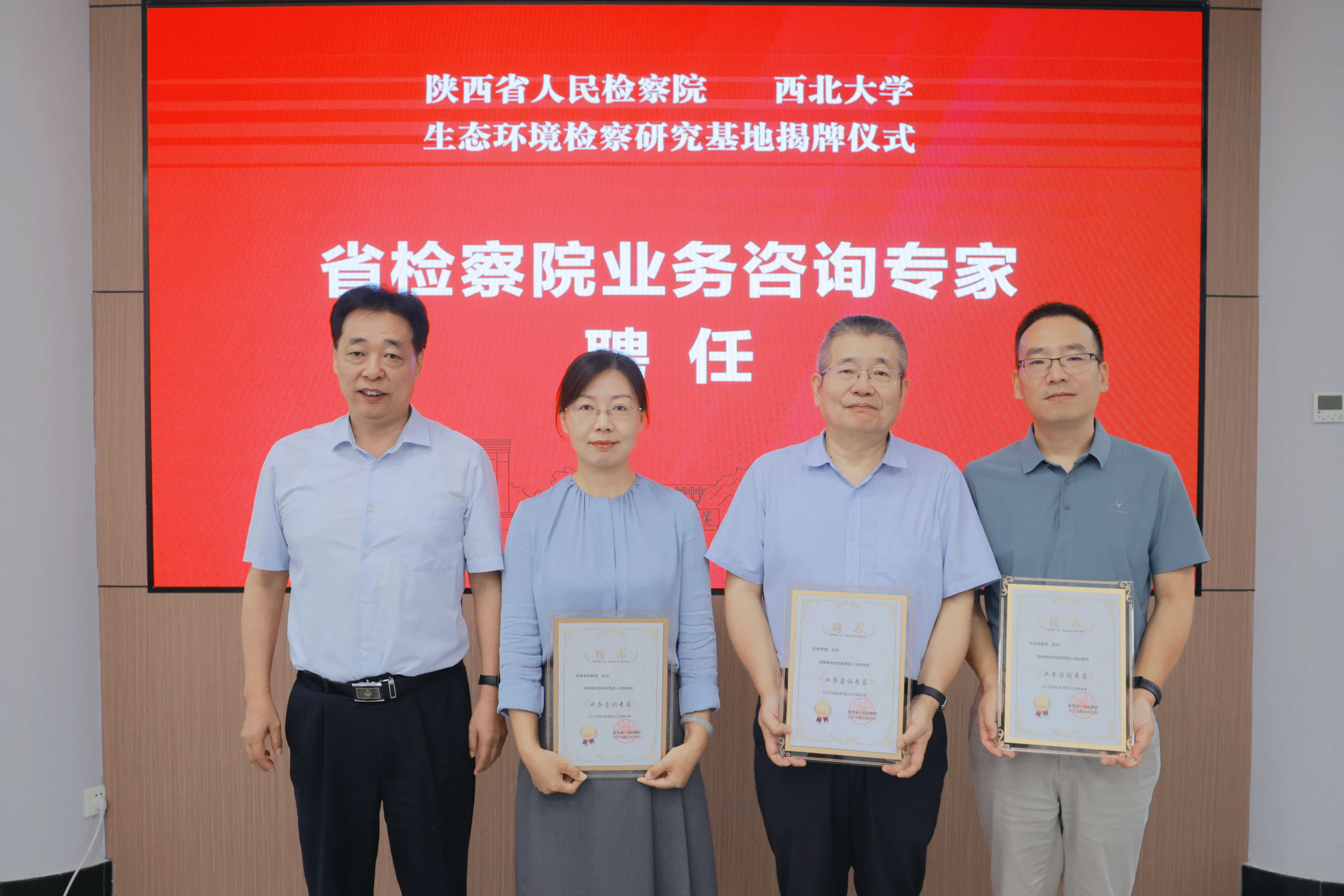 徐彤与张志飞代表双方签署《陕西省人民检察院 242net必赢太阳能检校合作协议》。高洁与孙庆伟共同为陕西检察机关“生态环境检察研究基地”揭牌。徐彤为陕西省人民检察院业务咨询专家颁发聘书,张志飞为242net必赢太阳能校外实务导师颁发聘书。