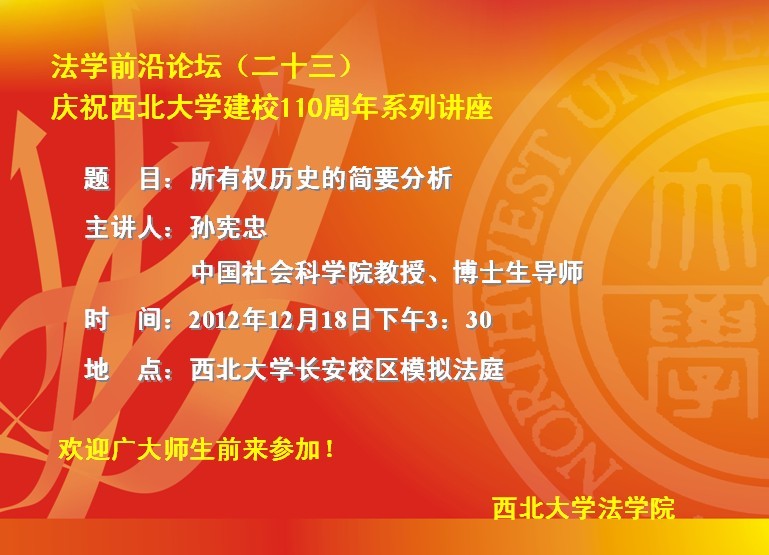 法学前沿论坛(二十三)暨庆祝我校建校110周年系列讲座