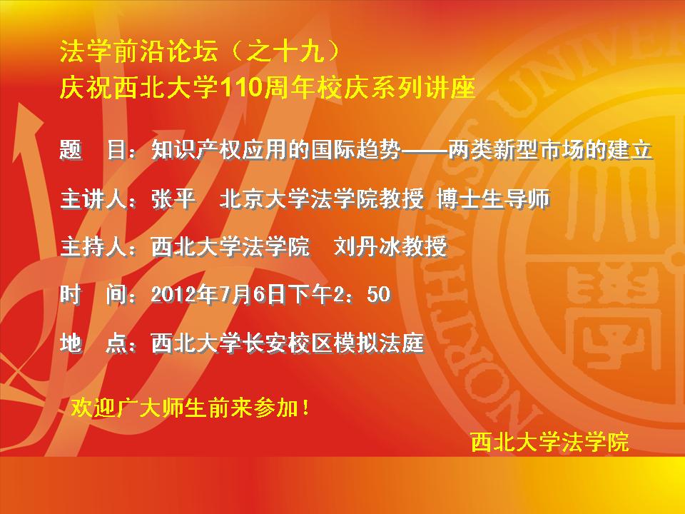 法学前沿论坛(之十九)暨庆祝我校110周年校庆系列讲座